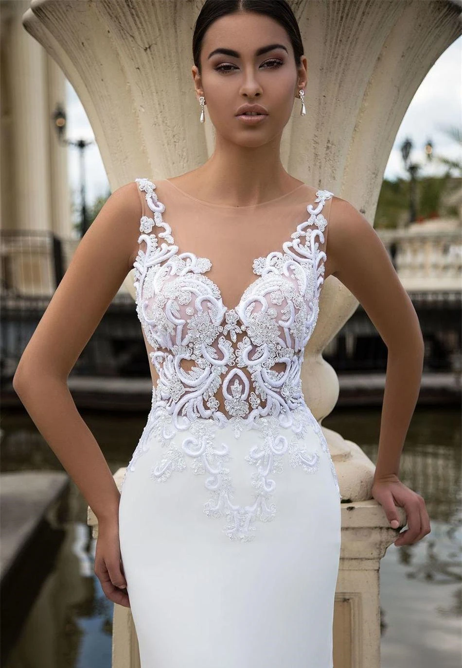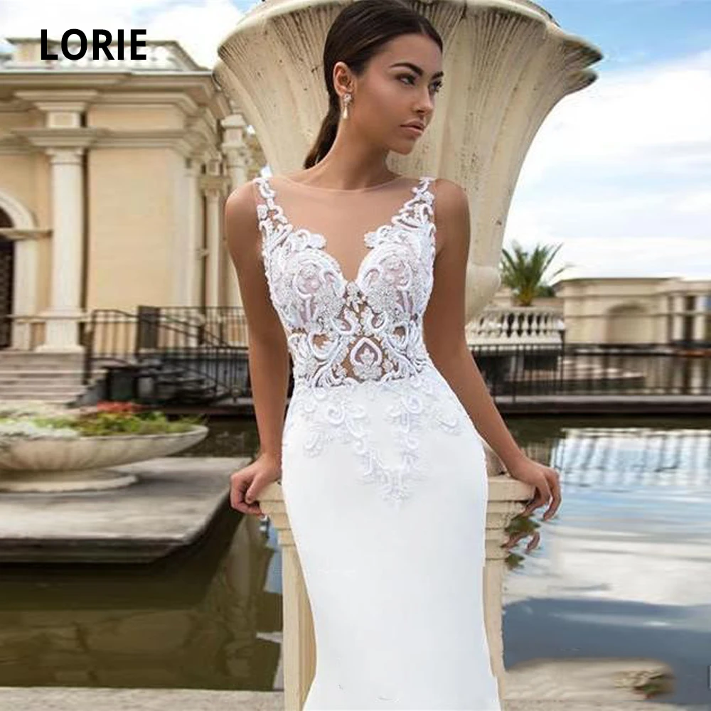 Новинка 2020, шифоновые Свадебные платья LORIE с юбкой-годе, Пляжное кружевное свадебное платье без рукавов с иллюзией сзади, платья принцессы для свадебной вечеринки