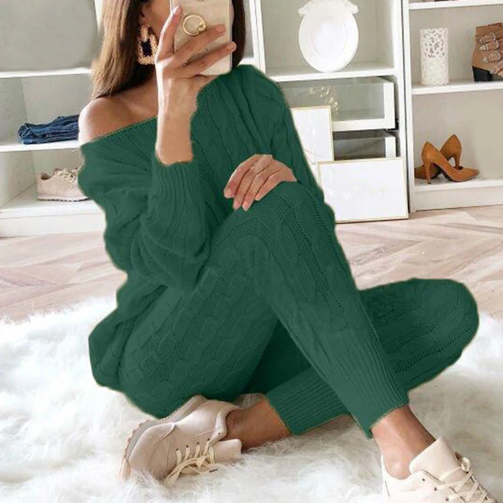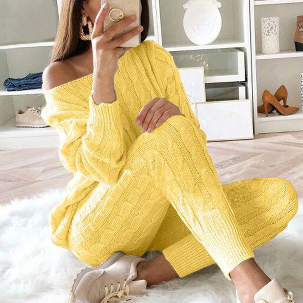 Весенний хлопковый спортивный костюм для женщин, комплект из 2 предметов, свитер с круглым вырезом + штаны с эластичной резинкой на талии, Трикотажный костюм, женский комплект из 2 предметов