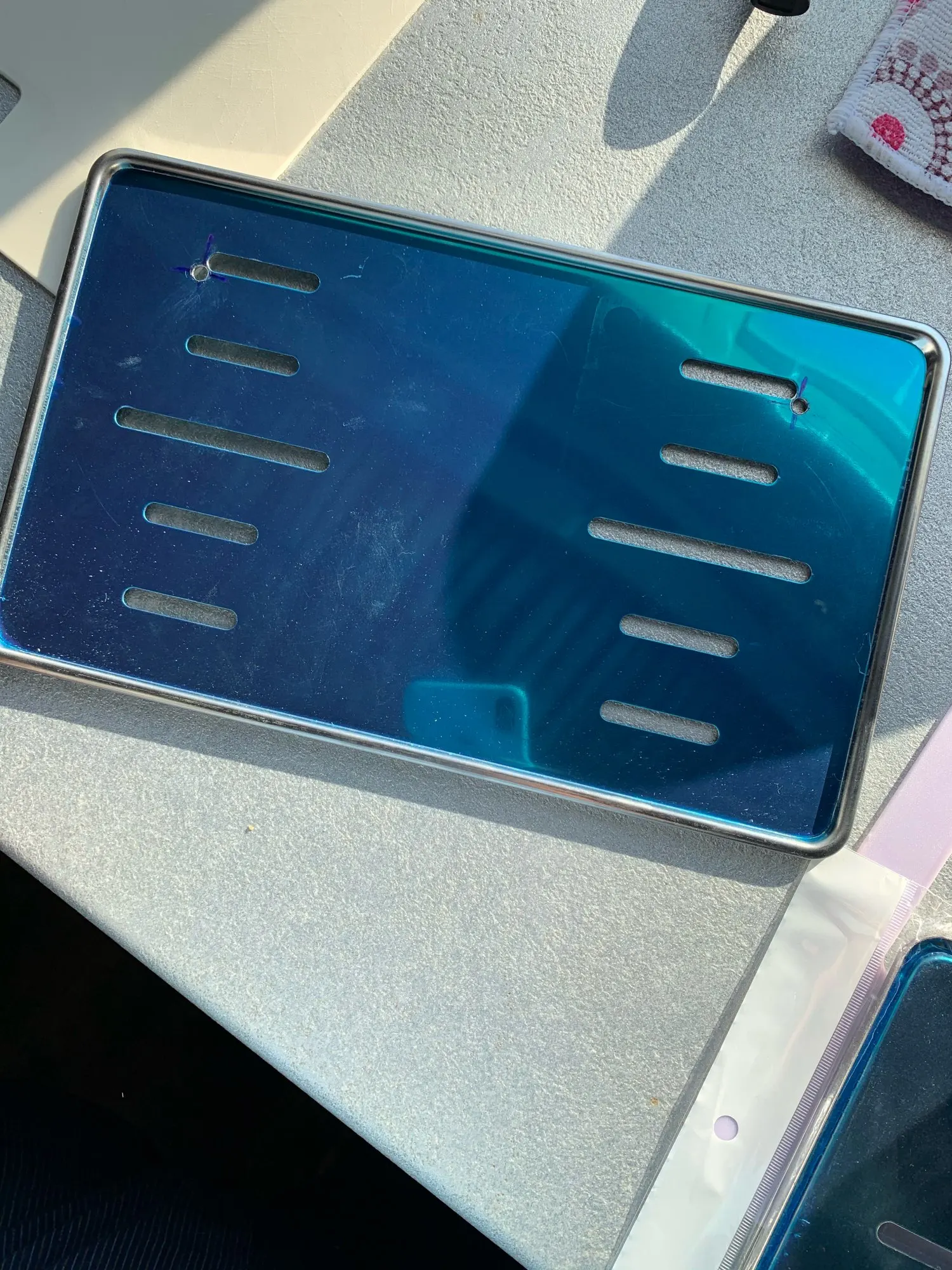 Рамка из нержавейки под квадратный номер 1А. Все как а описании. Сталь не нормальной толщины. При креплении придётся сверлить и рамку и номер.