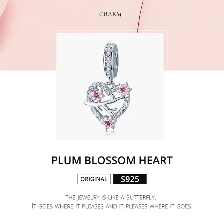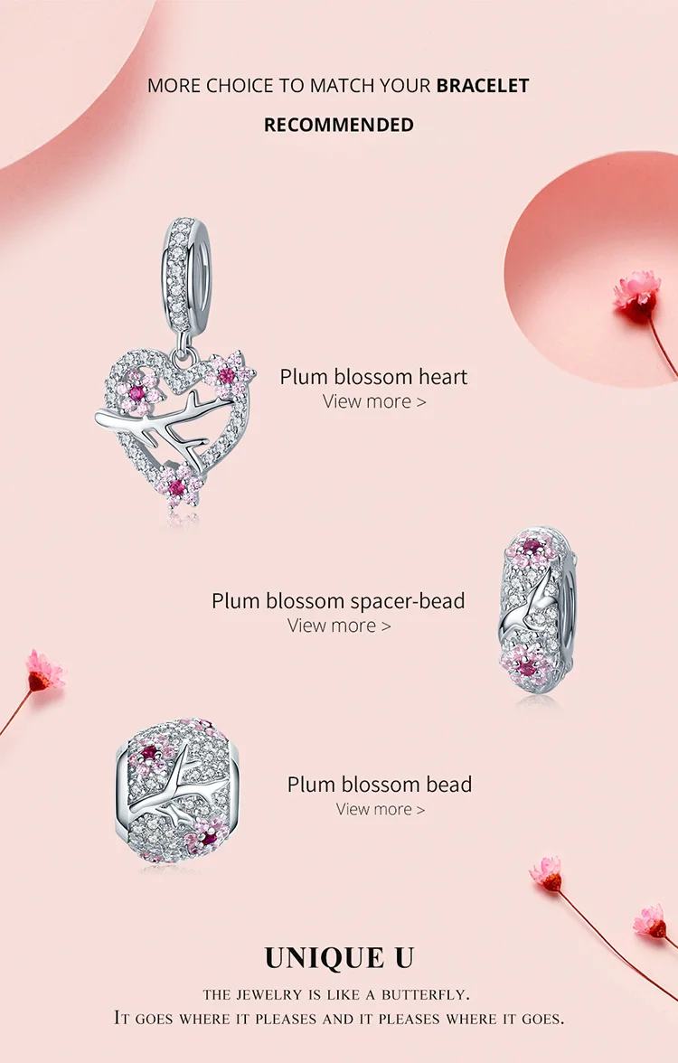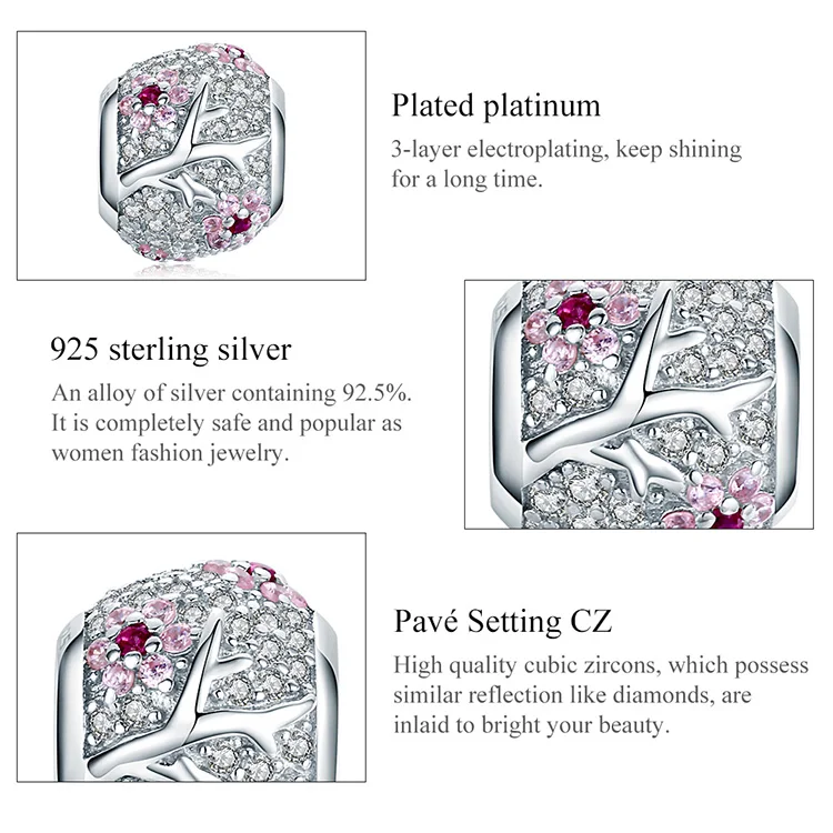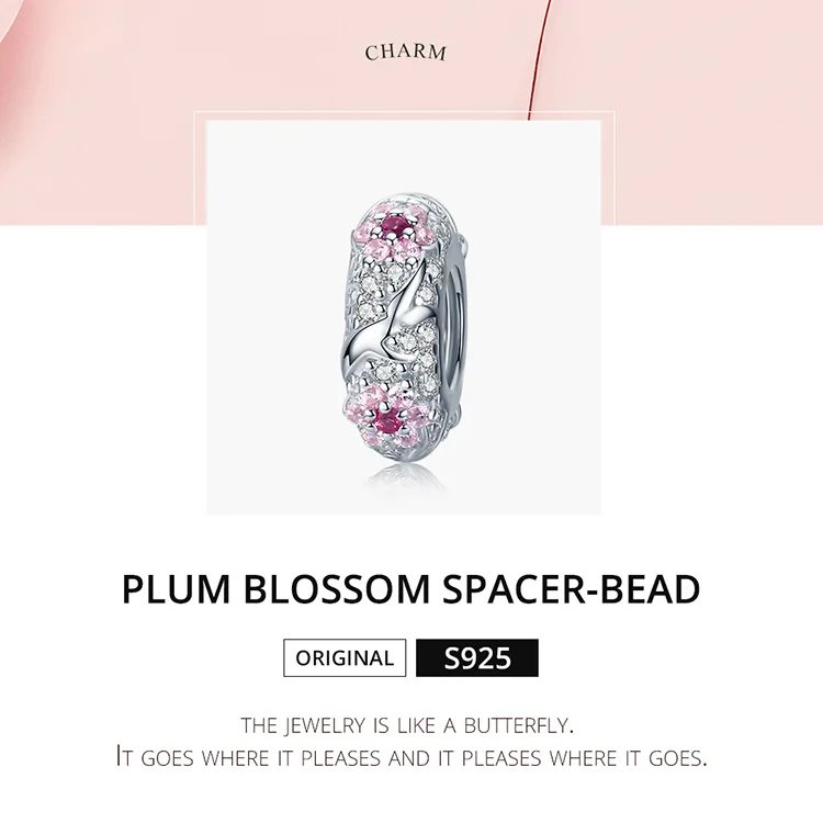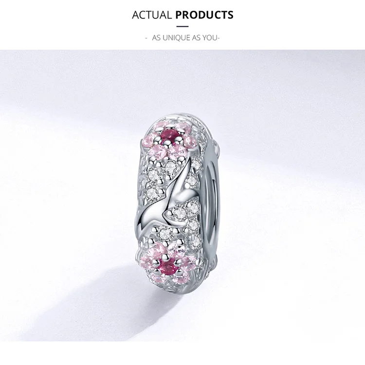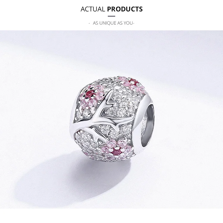 Бусина-Шарм из серебра 925 пробы с цветком сливы
