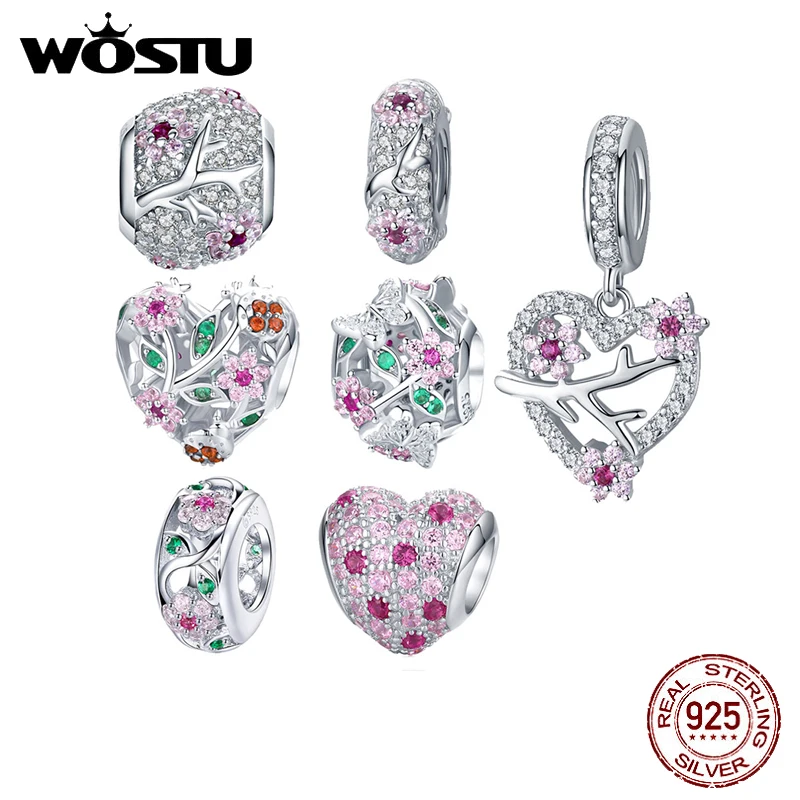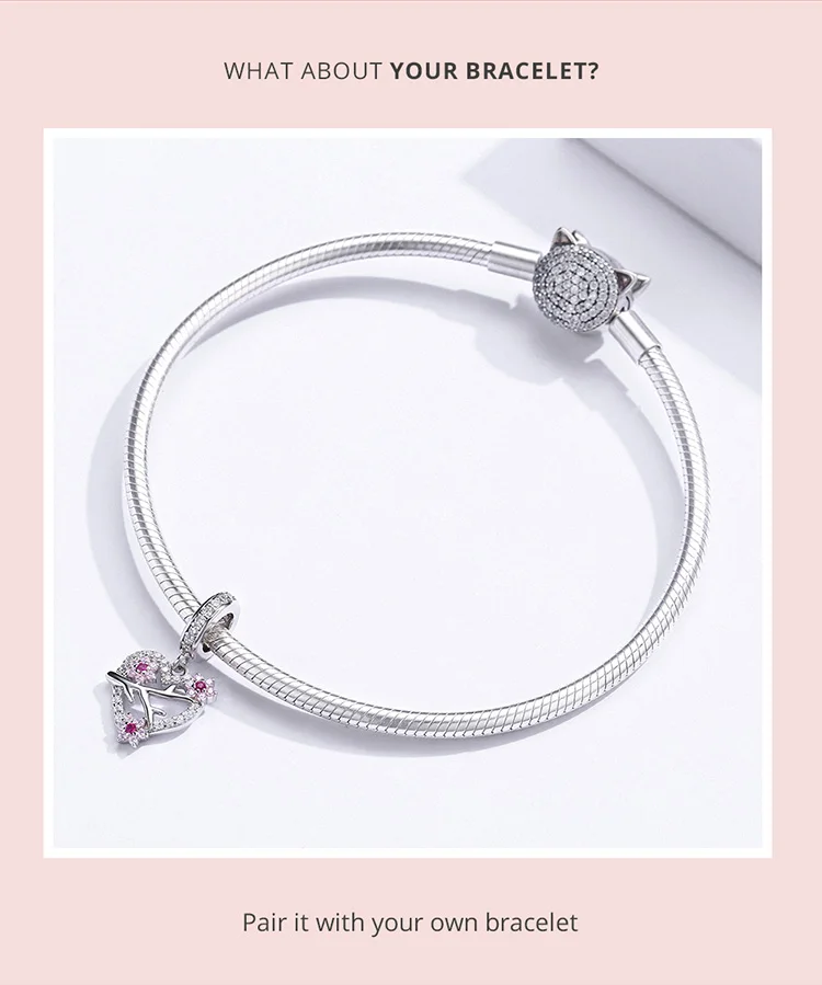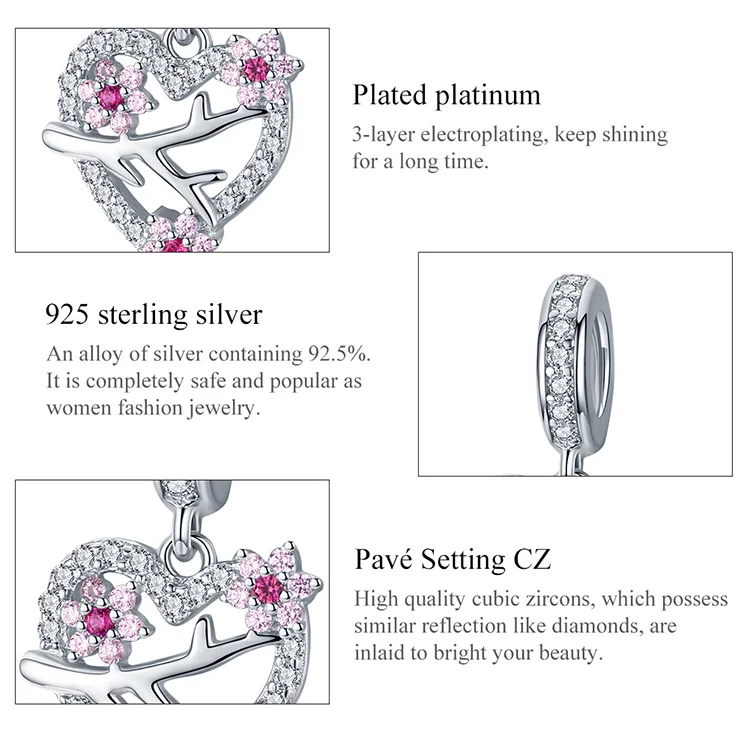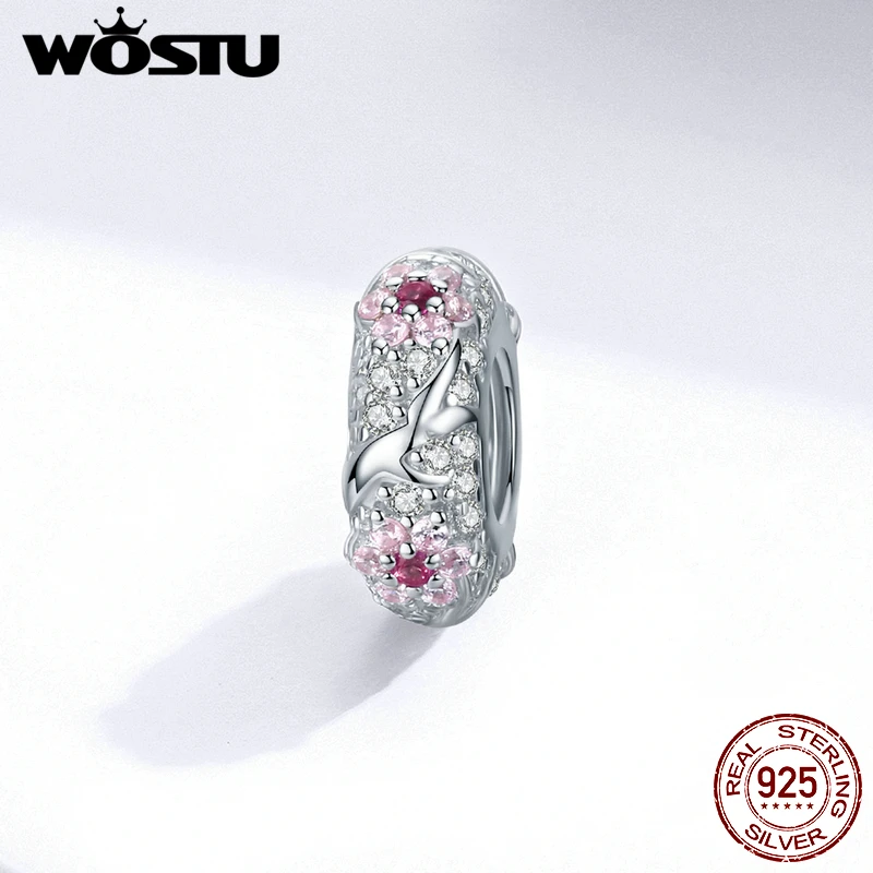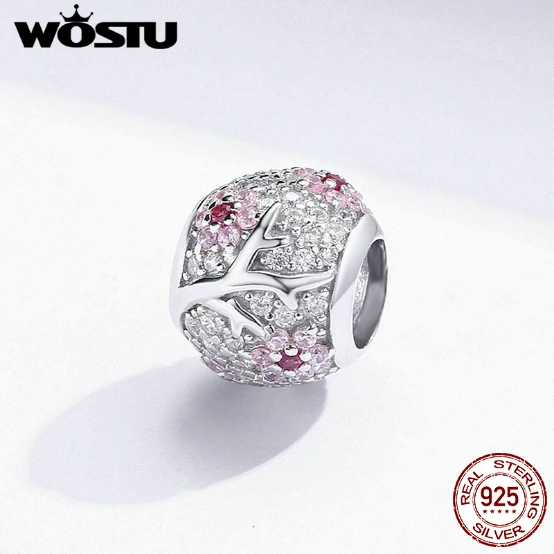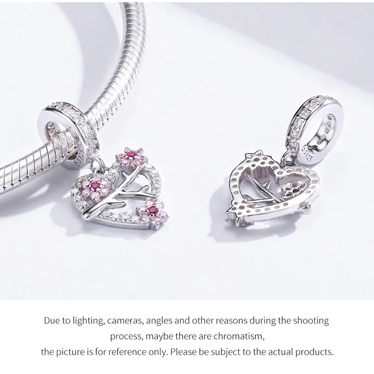 Бусина-Шарм из серебра 925 пробы с цветком сливы