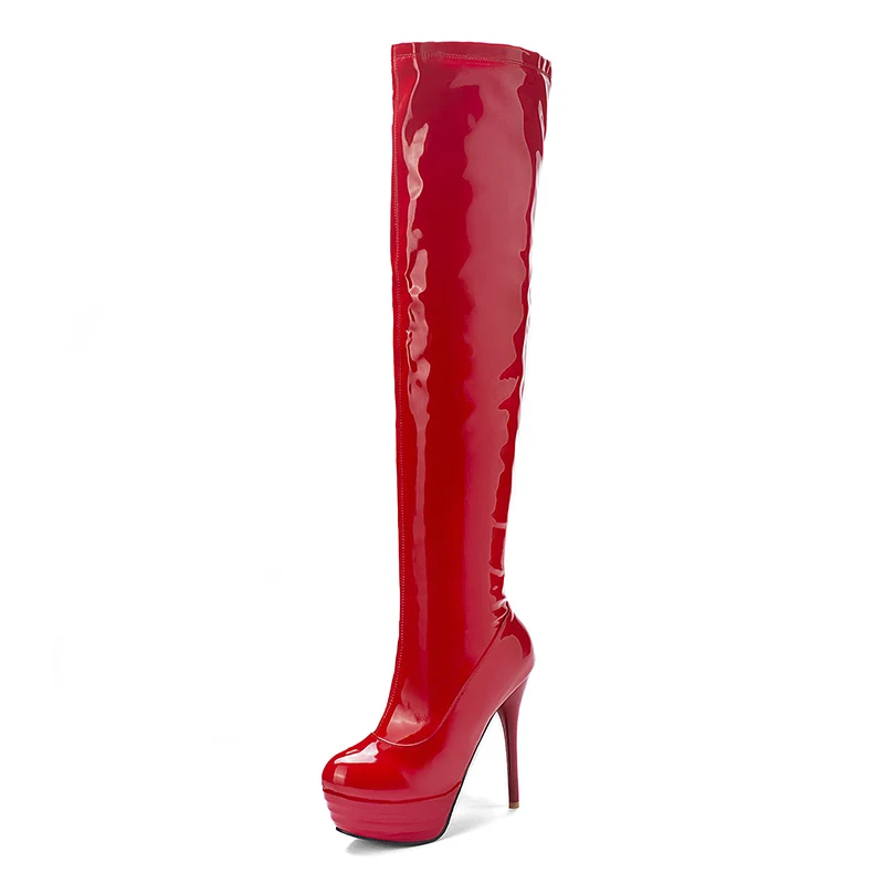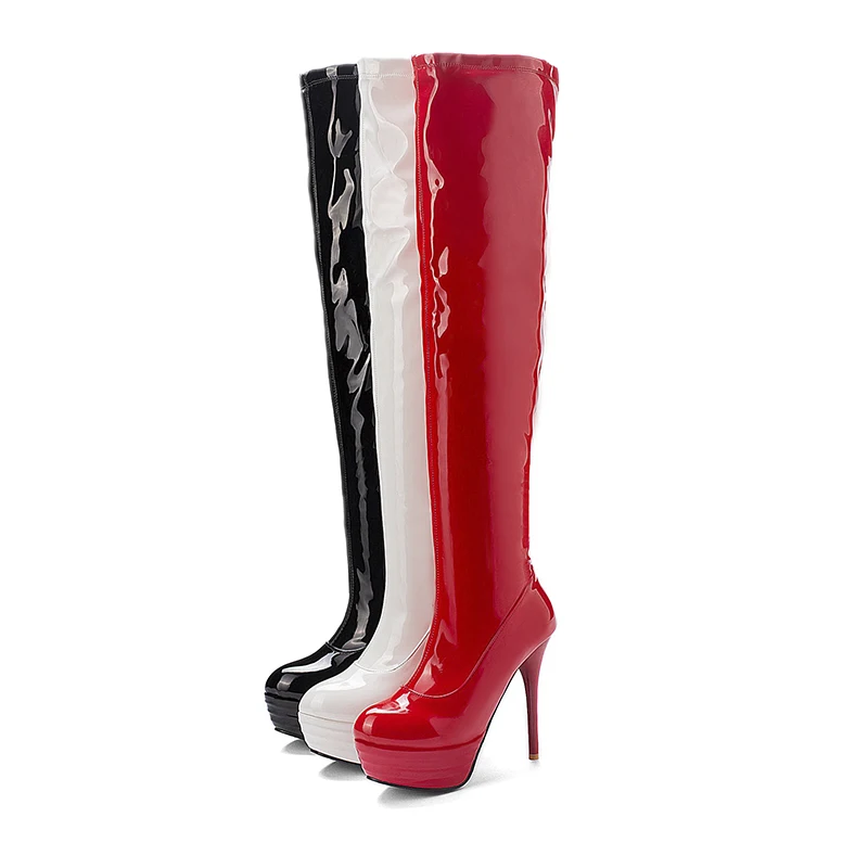 Пикантные красные сапоги до колена на очень высоком каблуке, черные сапоги из лакированной кожи, Детские осенне-зимние танцевальные сапоги в европейском и американском стиле