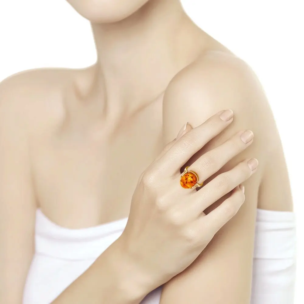 Кольцо SOKOLOV из золочёного серебра с янтарём (пресс.), Серебро, 9...