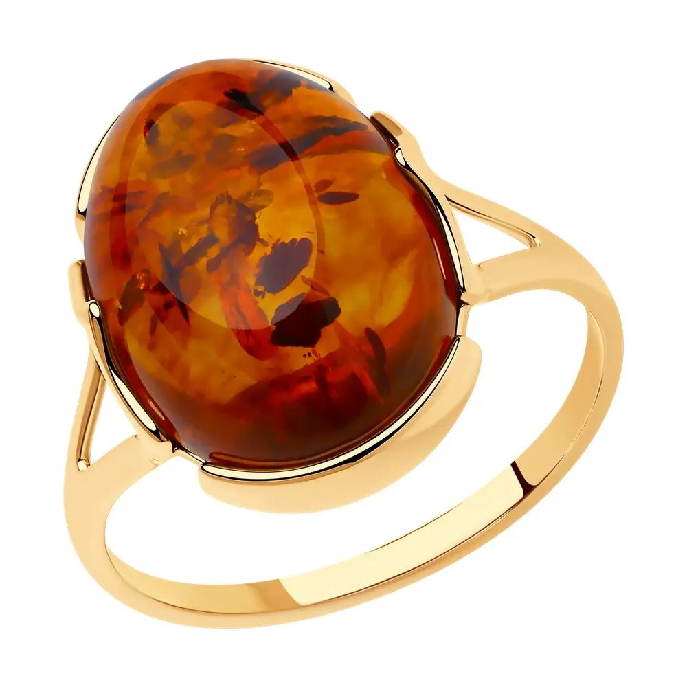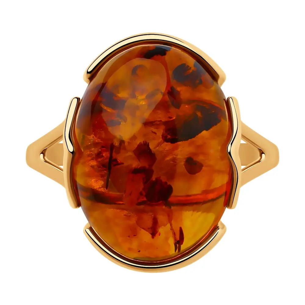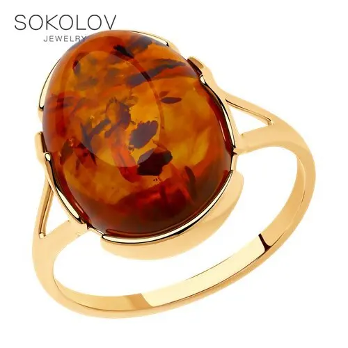 Кольцо SOKOLOV из золочёного серебра с коричневым янтарём (пресс.)