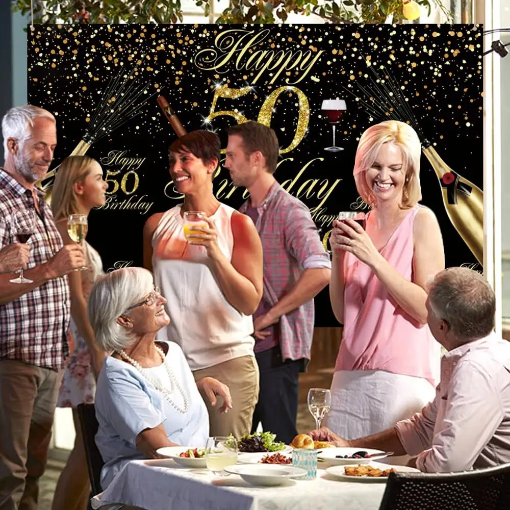 Подарок на 50 лет, черный золотой шар, день рождения, 50 лет, украш...