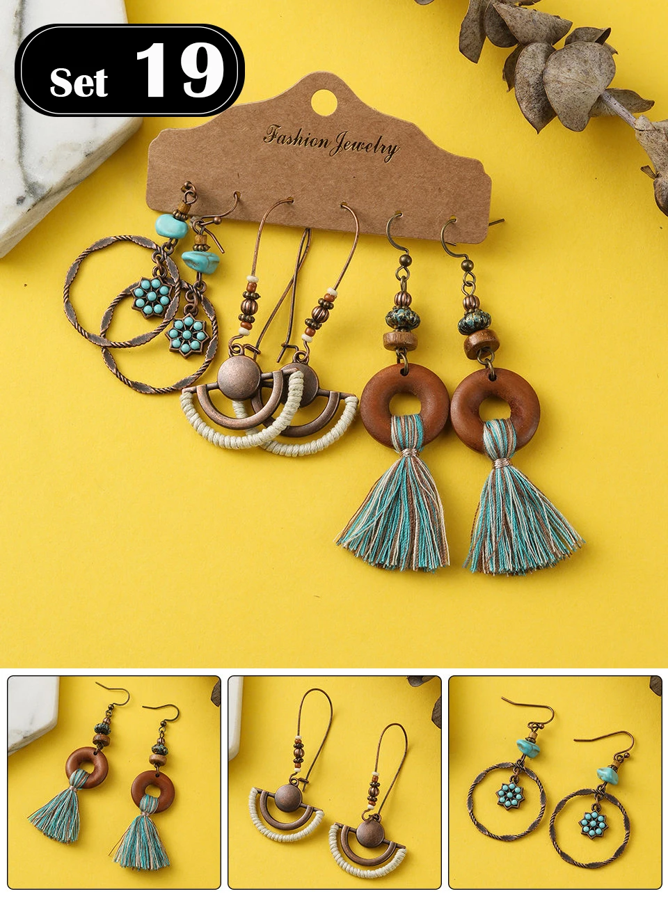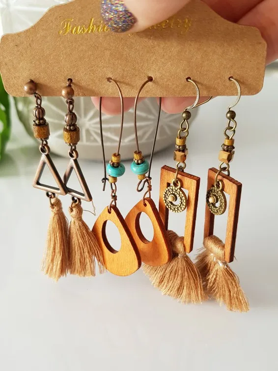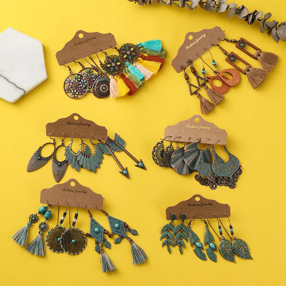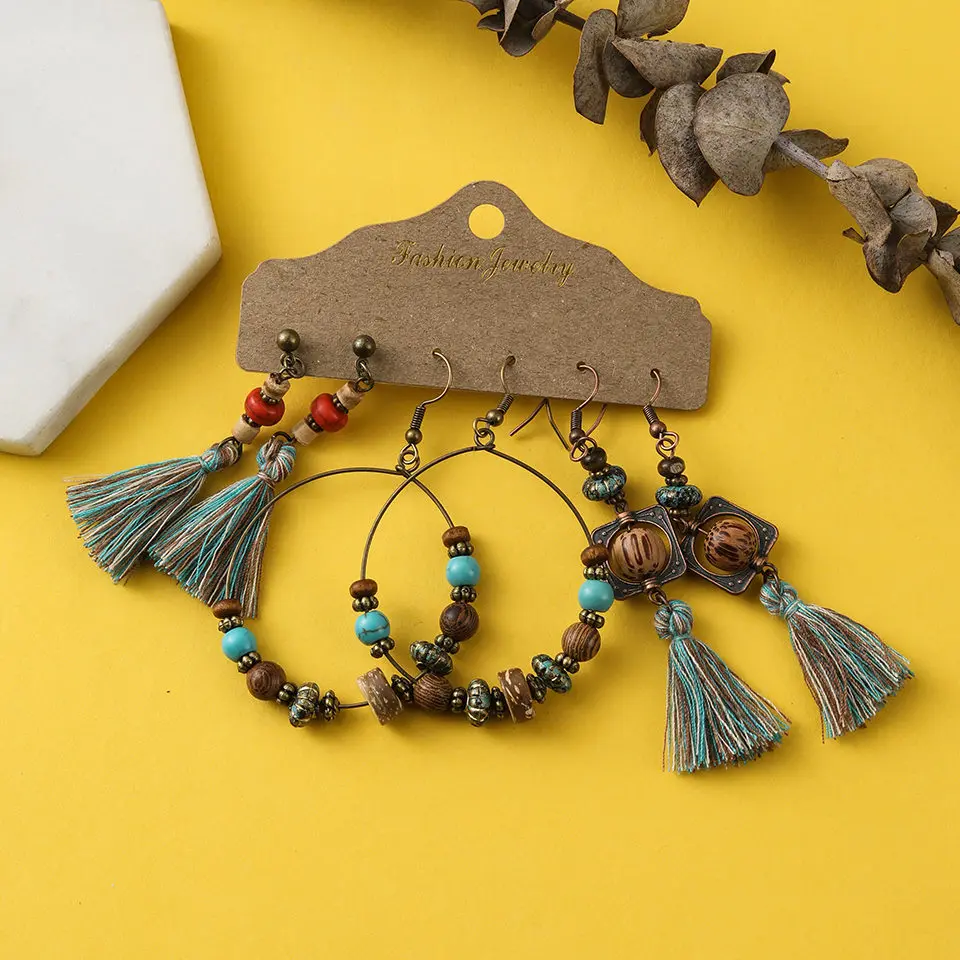 3 пары, очаровательные этнические богемные Винтажные висячие серьги-кисточки в стиле бохо для женщин, женские свадебные украшения, подарочные аксессуары