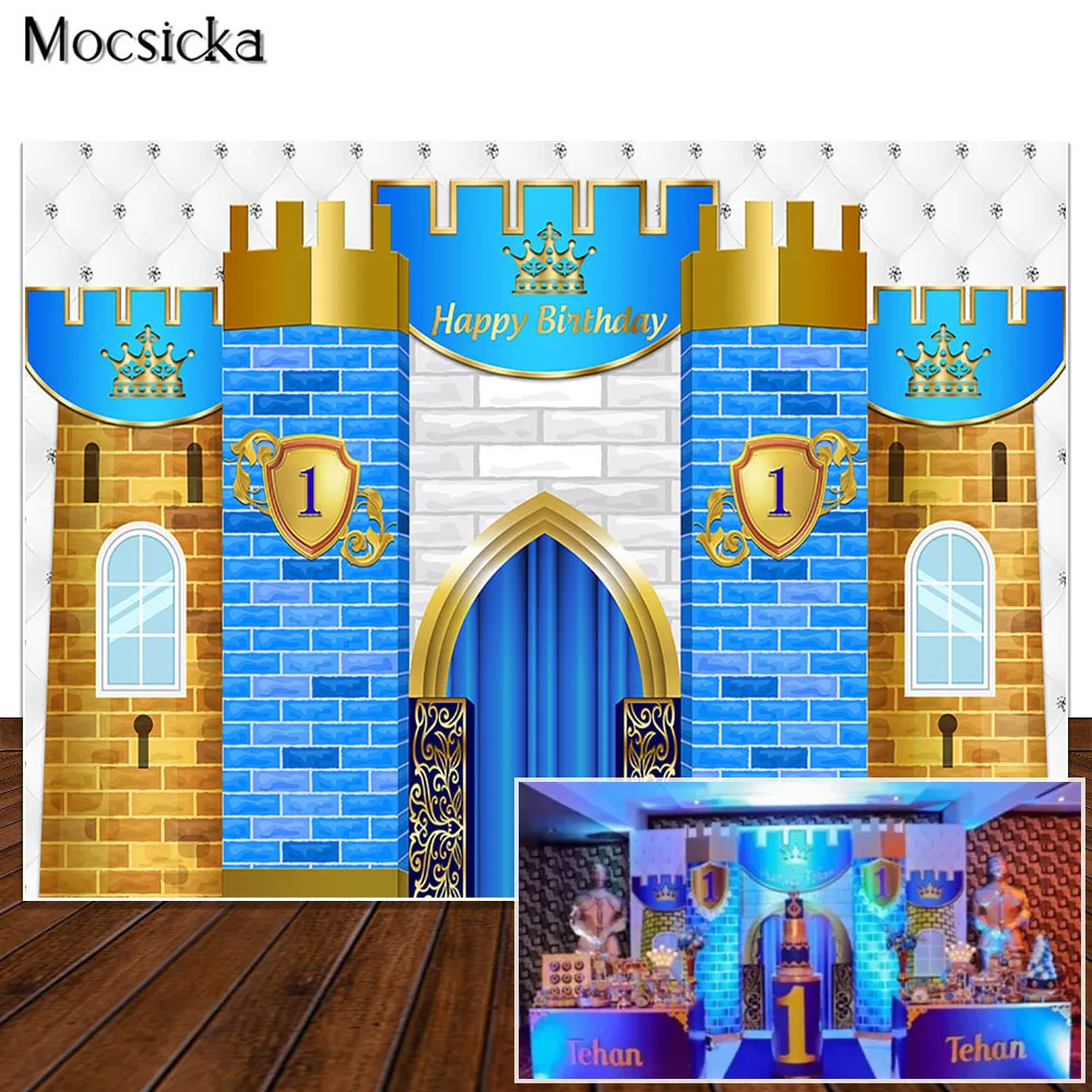 Королевский принц, синий замок, первый день рождения, фотографии, фон, мальчик, первый день рождения, детский душ, Вечерние Декорации, фоны для баннеров