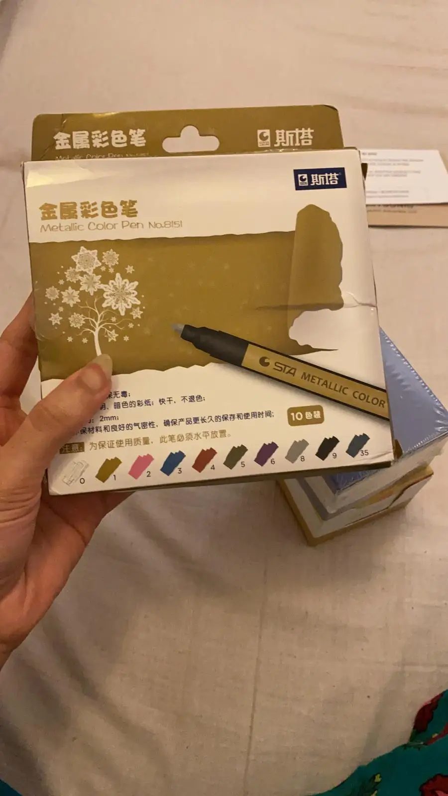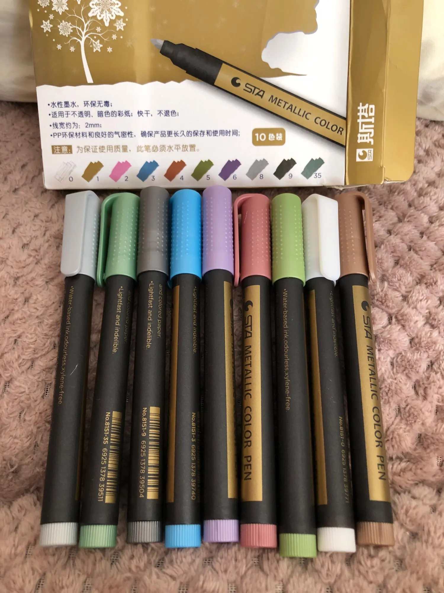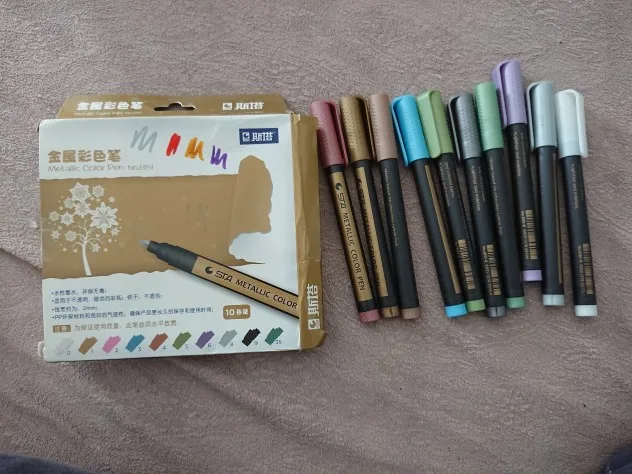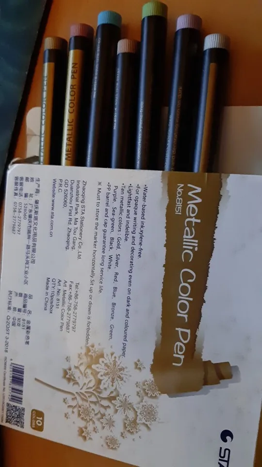 Очень быстрая доставка; Через 10 дней я получил их дома. Они поставляются в пузырчатом пакете, без коробки. Я пробовал все, и они идут хорошо, за исключением розового (который не является металлическим И красит красным/гранатом) и белого цвета, который не окрашивается на темной бумаге.