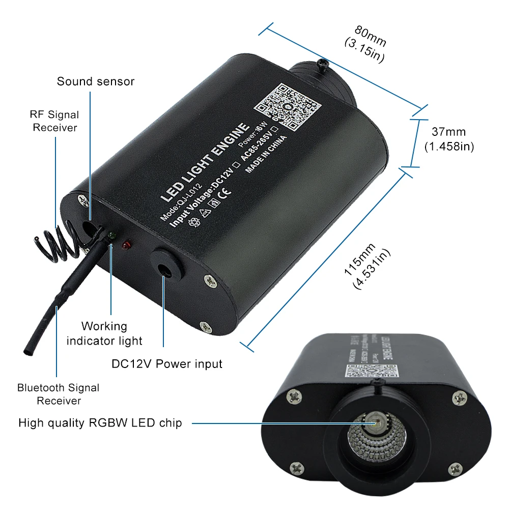 DC12V музыкальный светильник с управлением, источник питания, управление через приложение, 16 Вт RGBW светильник, двигатель, радиочастотный контроль для всех волоконно-оптических кабелей