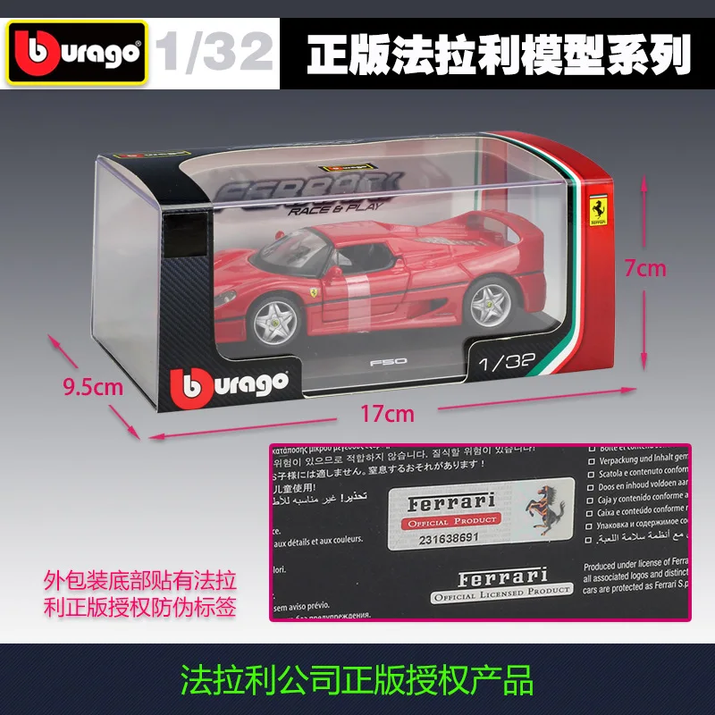 Модель спортивного автомобиля Bburago 1:32 Ferrari из сплава, крышка из оргстекла