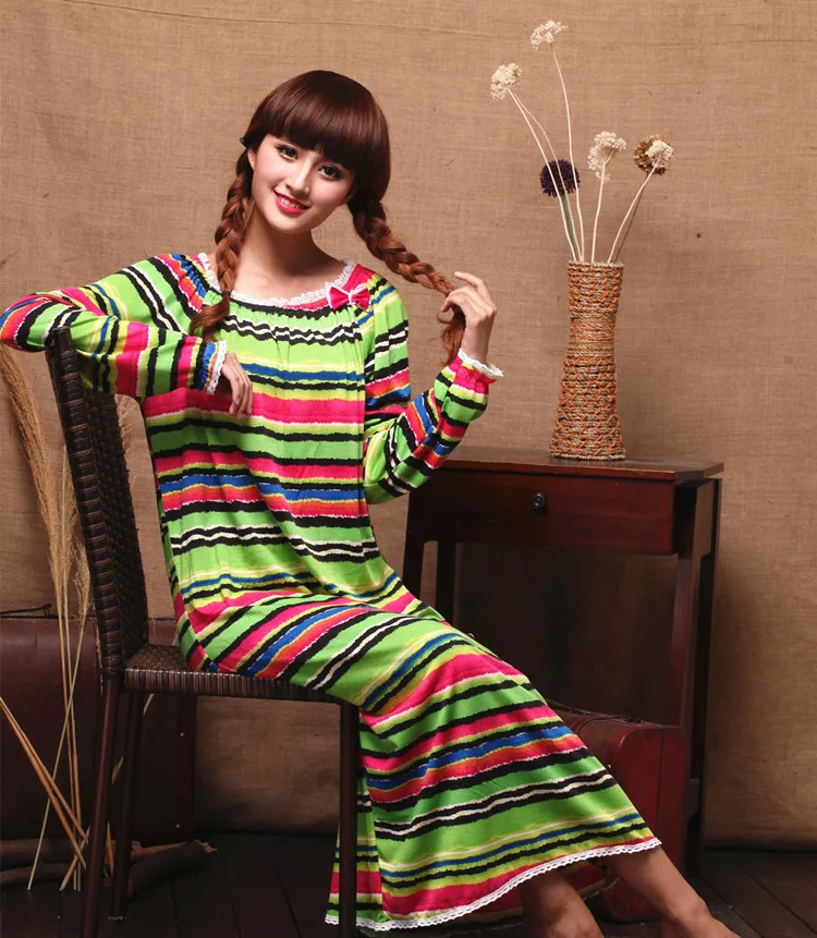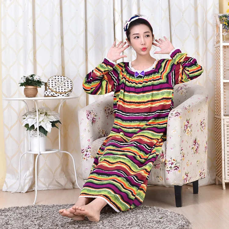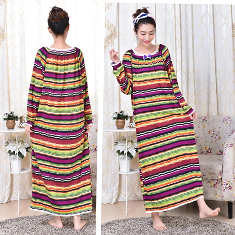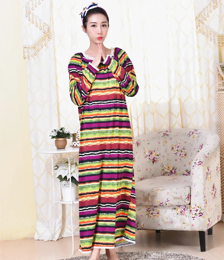 Весенне-осенне-зимняя Трикотажная хлопковая одежда для сна с длинным рукавом для девушек и принцесс, свободная очень длинная ночная рубашка большого размера для дома