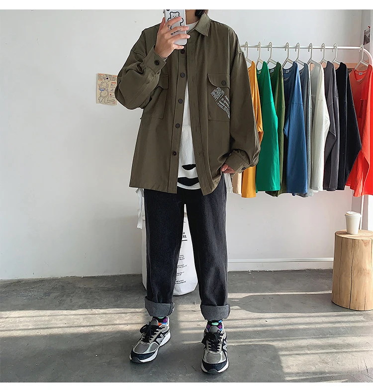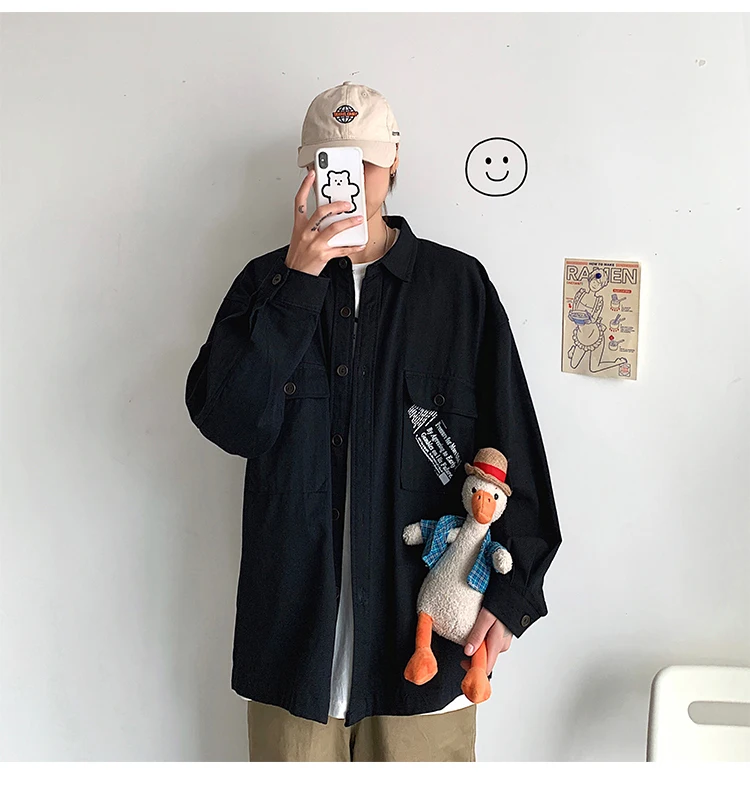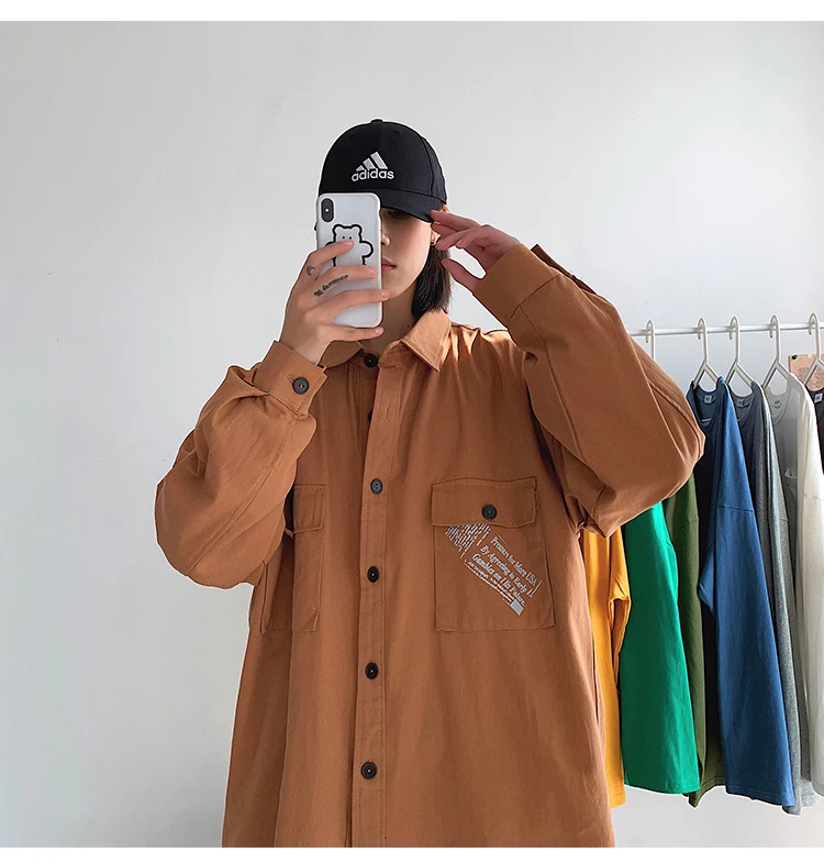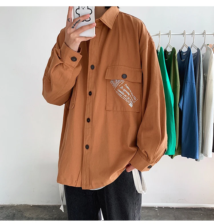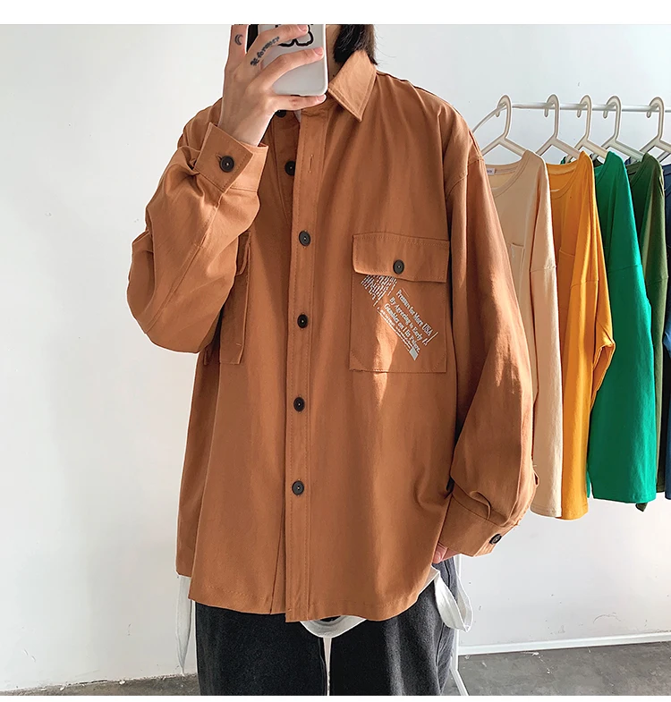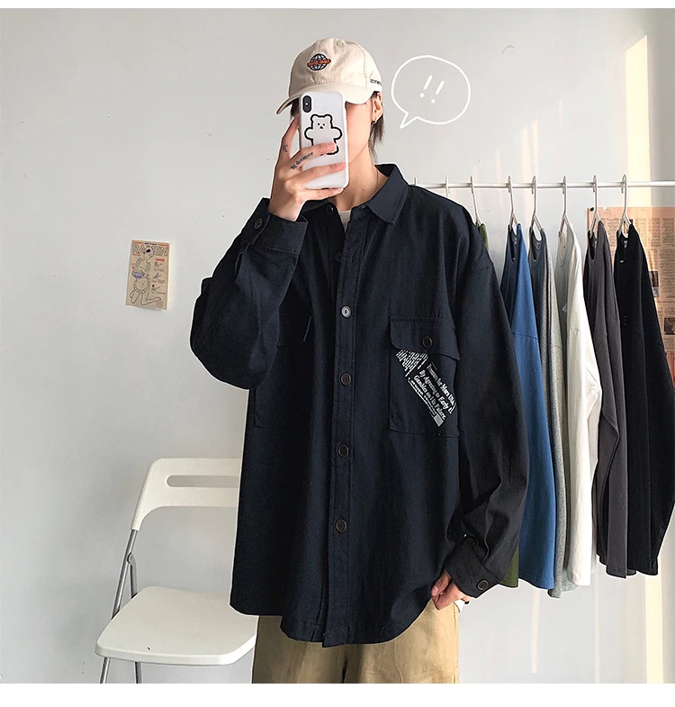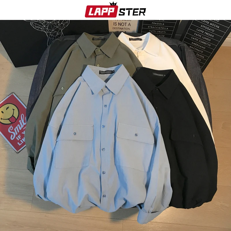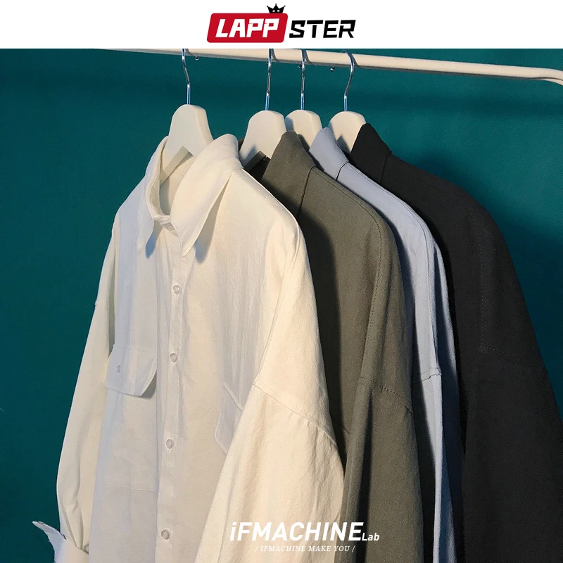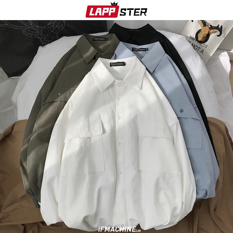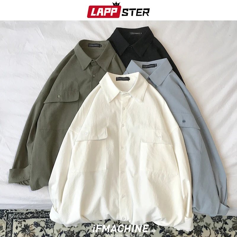 LAPPSTER мужского Корейского Harajuku Твердых рубашки 2020 Мужских Японские Карманы Уличных рубашек с длинным рукавом Мужских Повседневная Кнопки рубашки