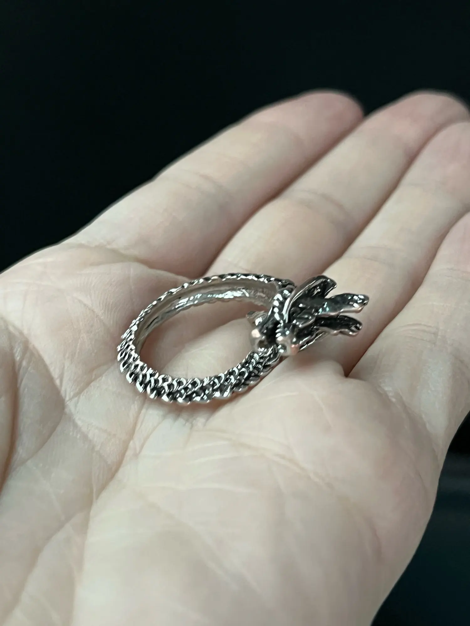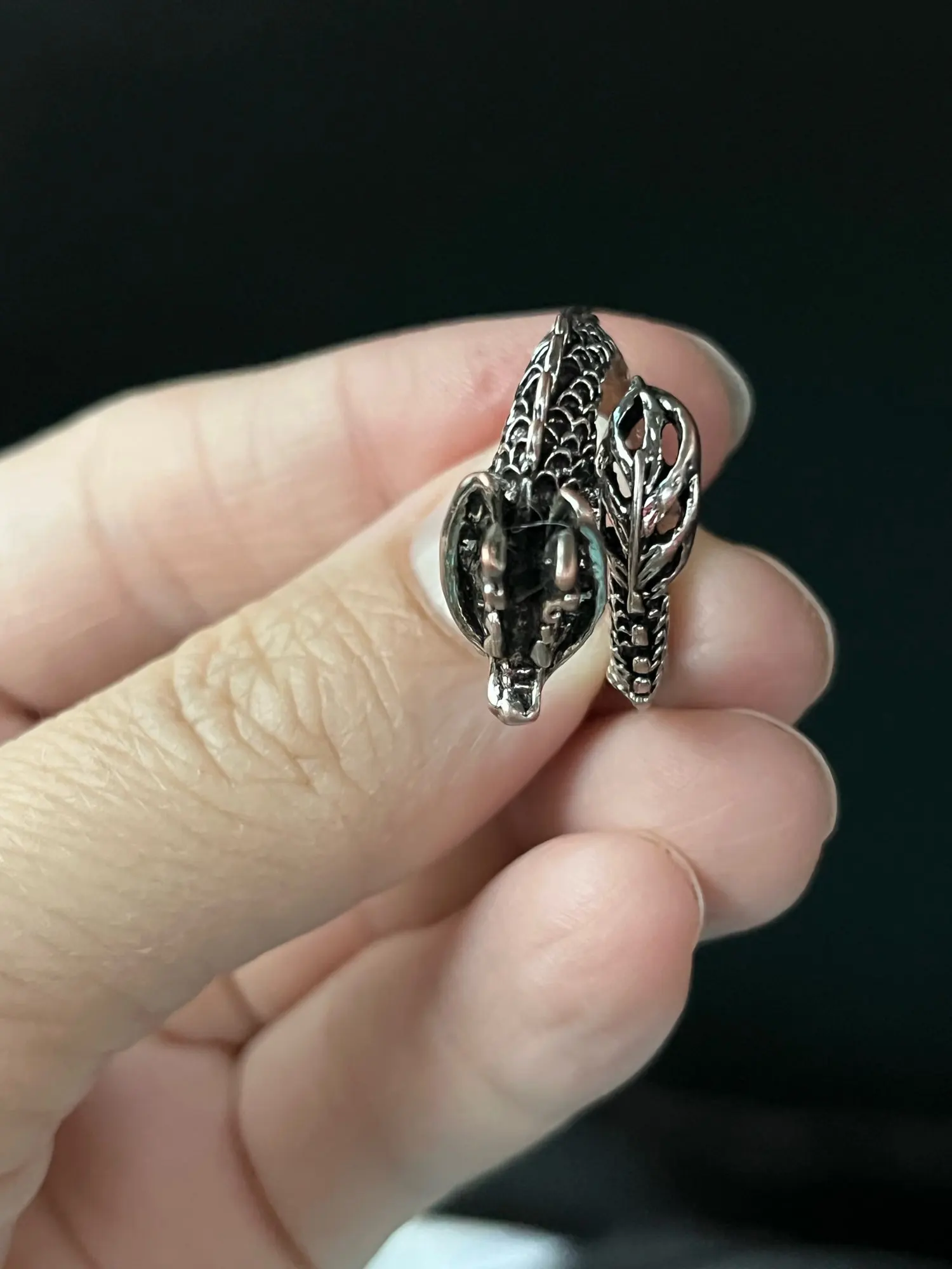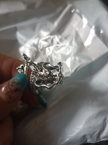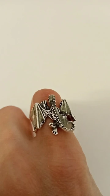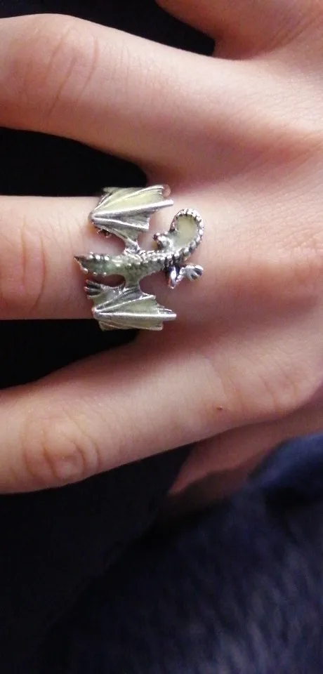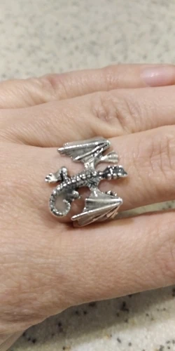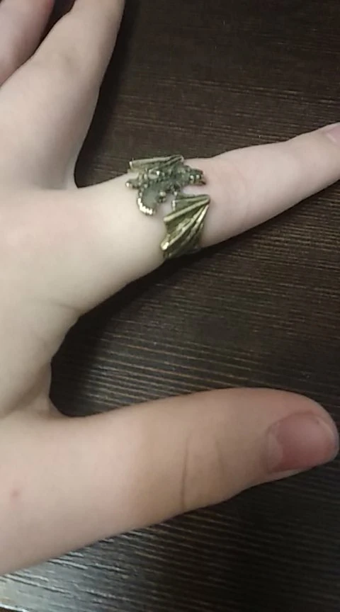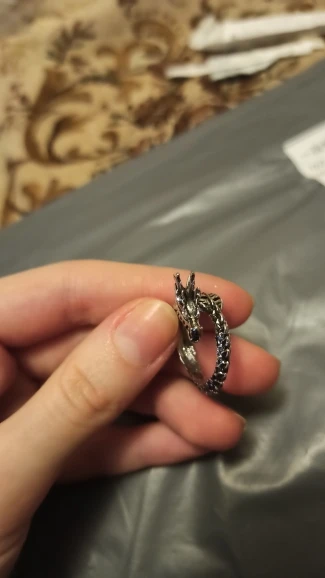 классное кольцо, брутальное, блеск радует глаз, размер не выбираешь, потому что оно может растягиваться из минусов - "уши" дракона будут цепляться за все подряд
