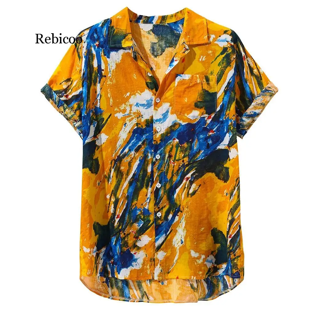 Мужская Гавайская свободная пляжная рубашка с короткими рукавами и принтом, Повседневная рубашка на пуговицах Особенности: 1. Он изготовлен из высококачественных материалов, достаточно прочный для ежедневного ношения 2. Идеально сочетается с вашими любимыми шортами и т. д. 3. Отлично подходит для вечерние, повседневные, пляжные, я уверен, вам понравится! 4. Носить его сделает вас более красивым Информация о продукте: Сезон: все сезоны Пол: для мужчин Повод: повседневный, повседневный Материал: хлопок Длина рукава: короткий рукав Стиль: Модный, повседневный
