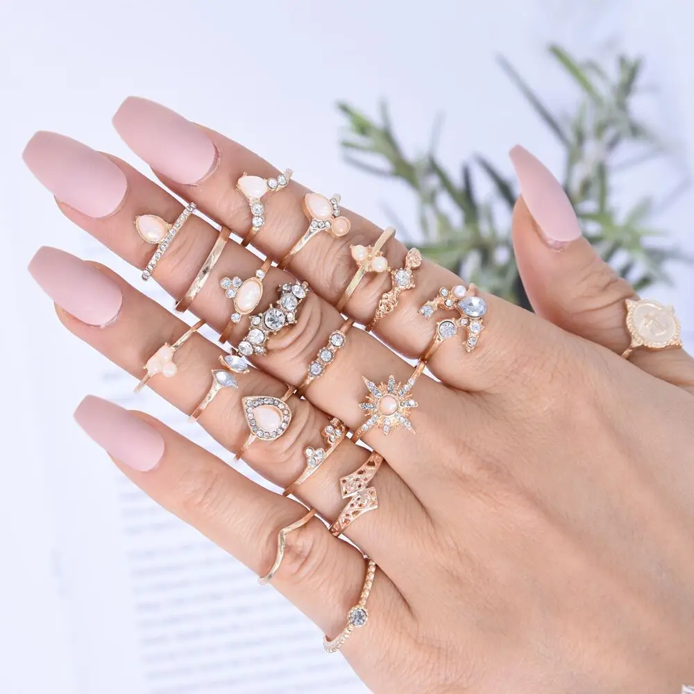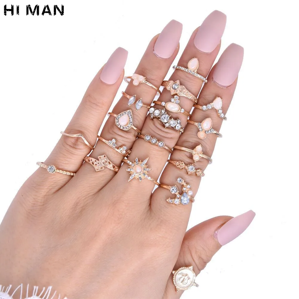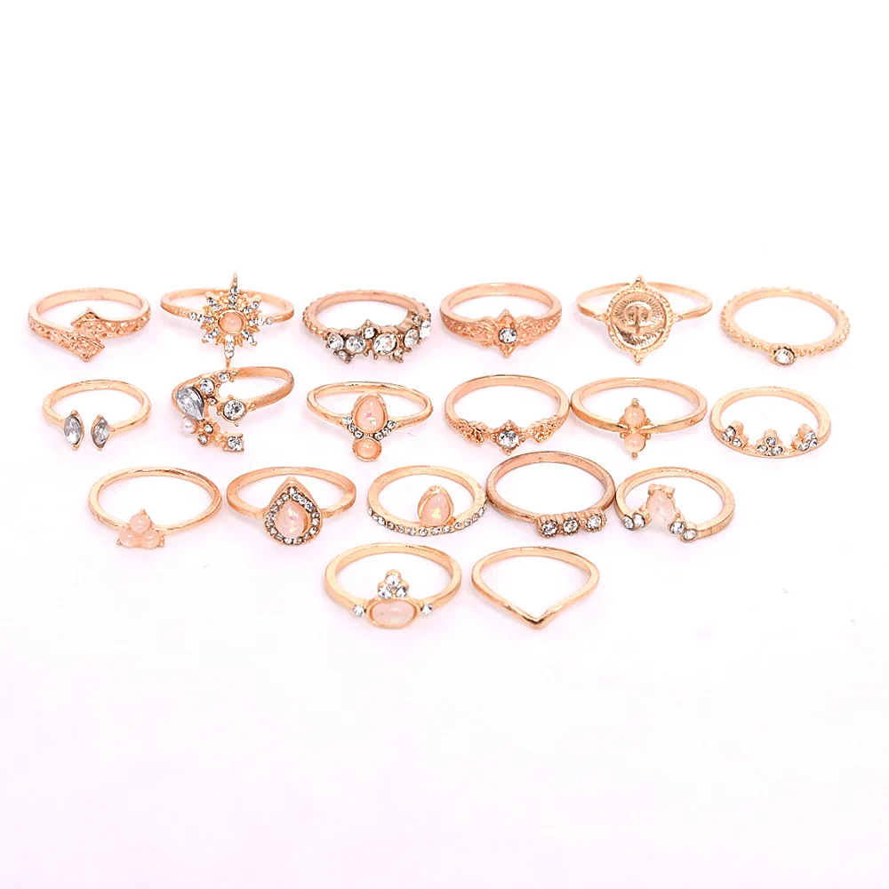 Набор женских ювелирных колец, 19 шт.лот, в богемном стиле, с инкрустированными кристаллами, в виде капли воды, с шестиконечной звездой