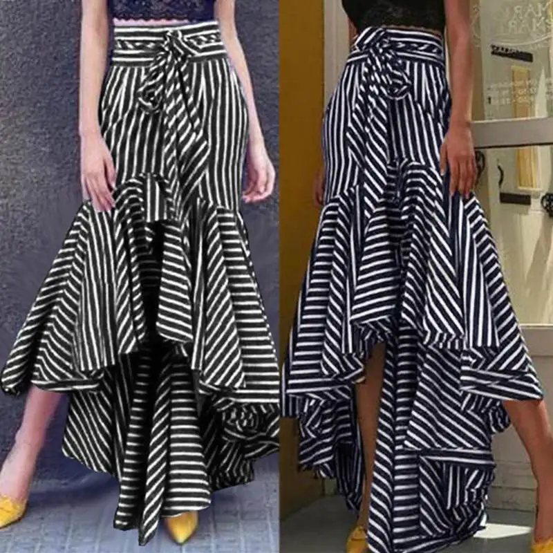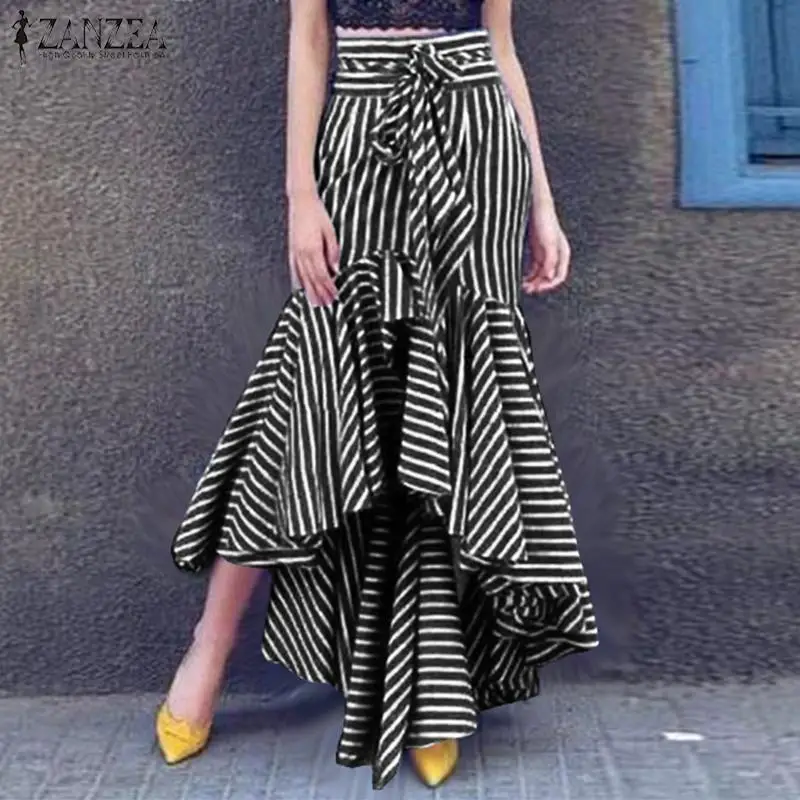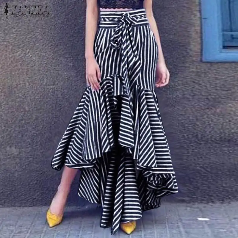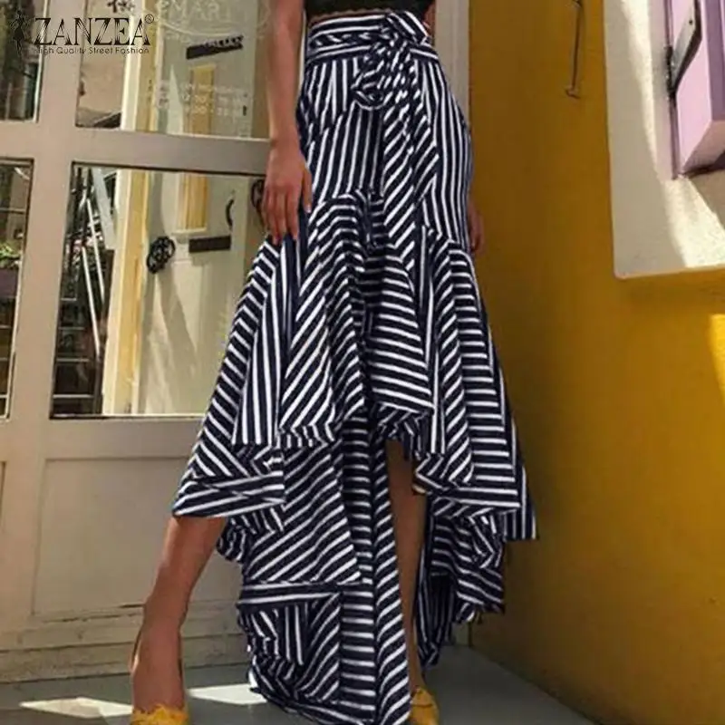 Юбка ZANZEA Женская в полоску, модная повседневная ассиметричная Макси-юбка с оборками и принтом, лето 2021