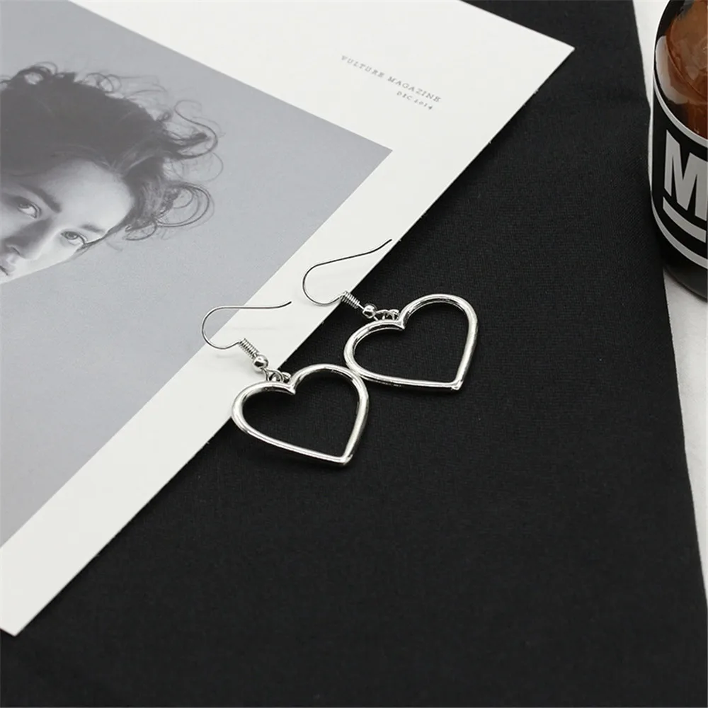 Простой дизайн, серебристый Цвет выбитое сердечко, свисающие серьги...