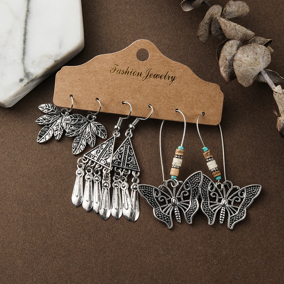 Новые этнические Смешанные Серьги в виде капель, наборы, богемные винтажные круглые Висячие висячие серьги в форме листа, серьга геометрической формы для женщин, ювелирное изделие, подарок