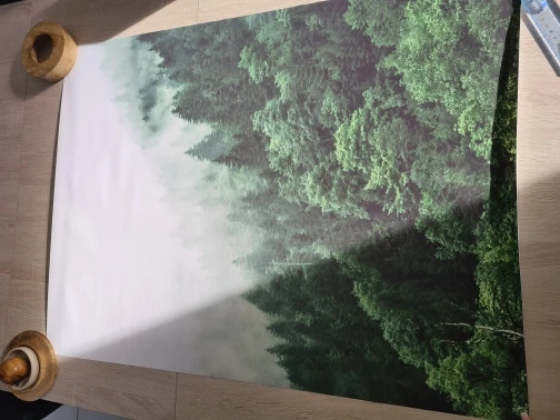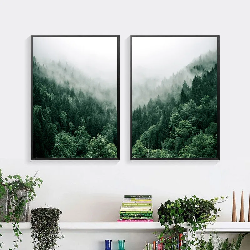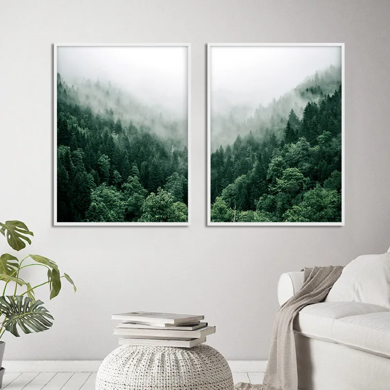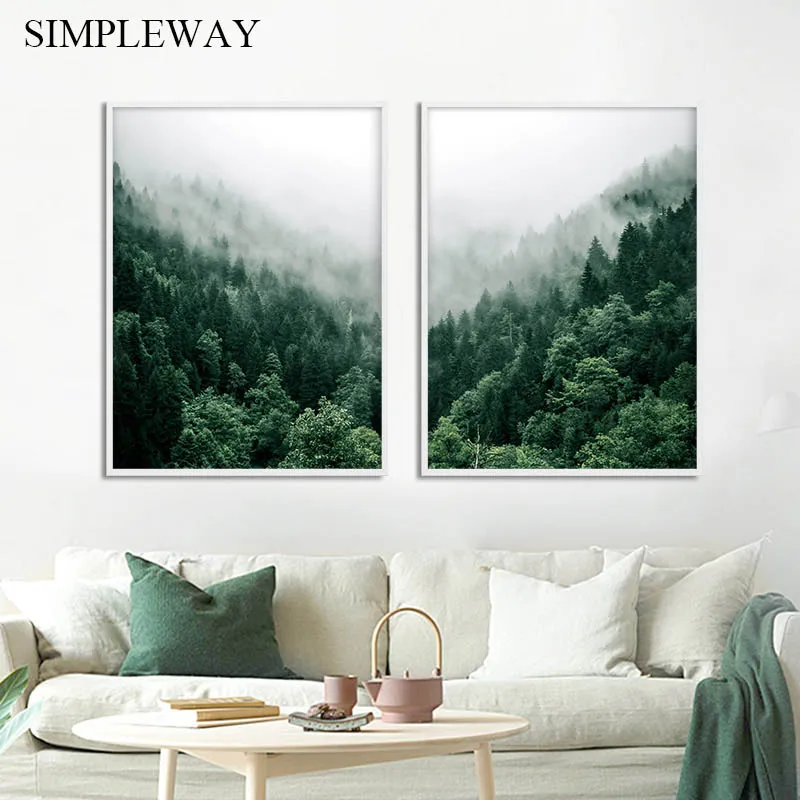Природа туман лес холст постер скандинавский восход солнца Гора сте...