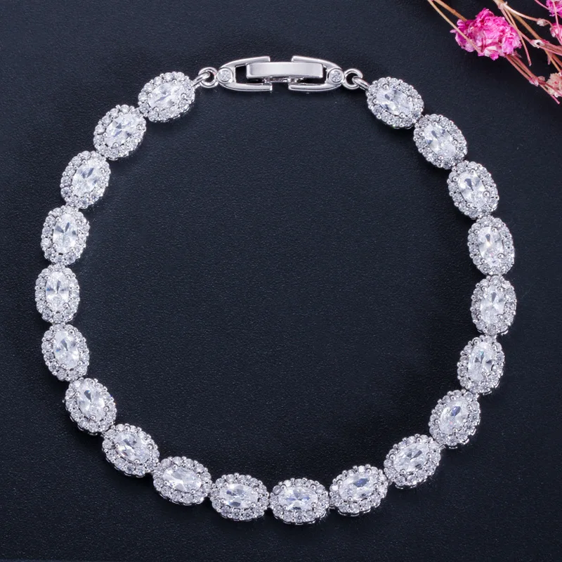 Овальный классический браслет с кубическим цирконием ААА для женщин, элегантный подарок на свадьбу, день рождения, три цвета