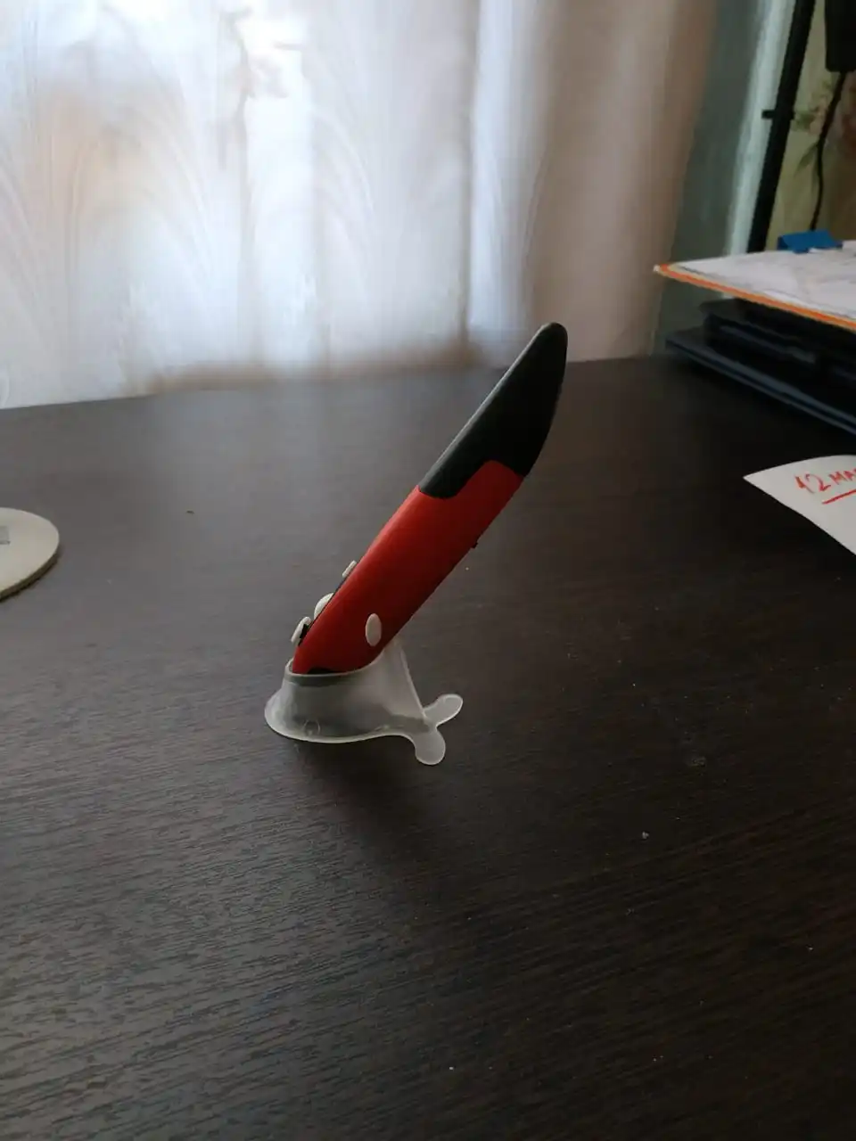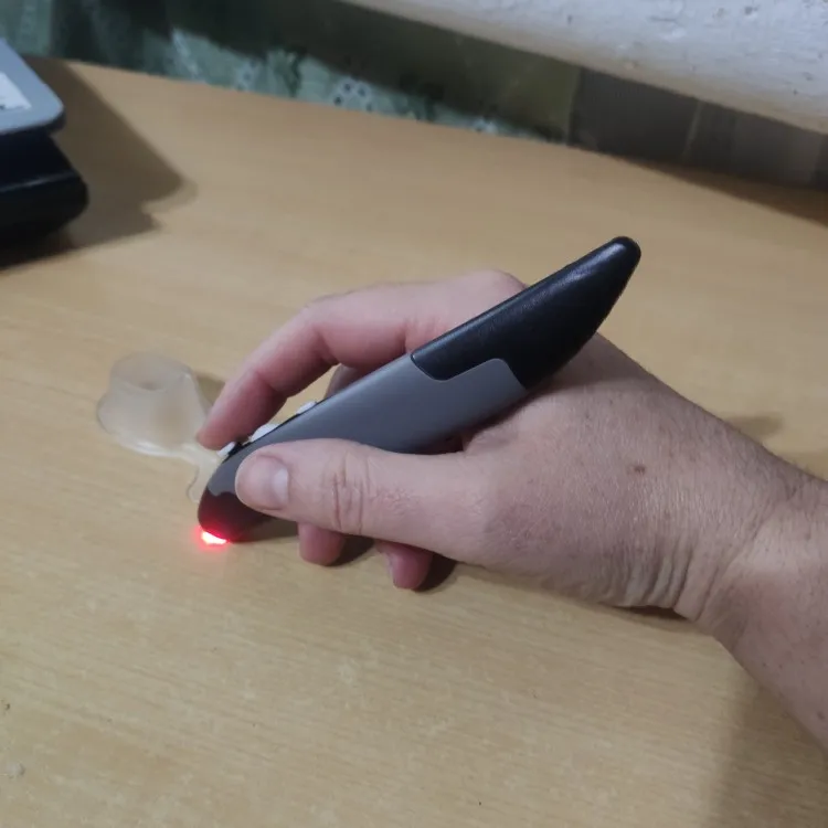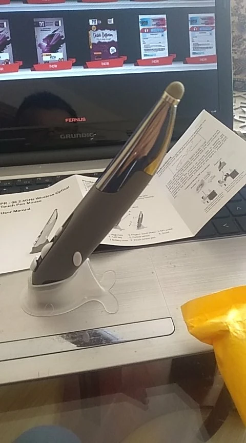 Работает. Как оригинальный гаджет - вполне. Рекомендую. Для меня при длительной работе -утомительно. Приходится постоянно удерживать в вертикальном положении. Время теряется при установке на "базу", а потом брать от-туда. Просто бросить тоже не вариант. Одним словом, прикольно. На презентации как презентер пойдет хорошо. На столе смотрится хорошо.Продавцу спасибо.