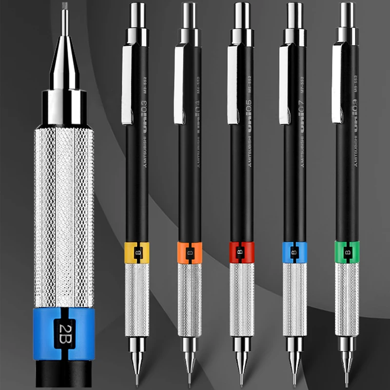 Механический карандаш Uni, 1 шт., M5-552 металлический, с низким центром тяжести, для художественной росписи, студенческий экзамен, 0,5, 0,3, 0,7, 0,9, 0,4 мм