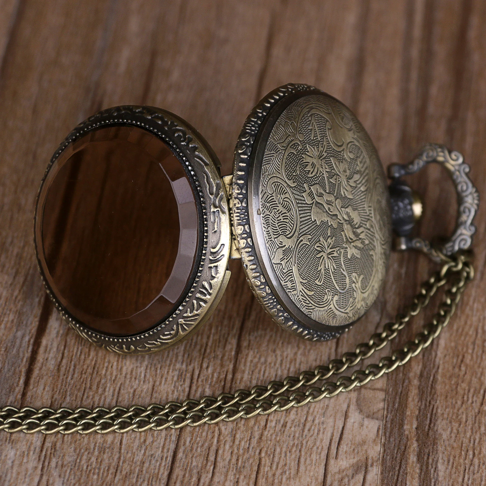 Часы наручные в стиле стимпанк для мужчин и женщин, ВИНТАЖНЫЕ КВАРЦЕВЫЕ, бронзовые, с цепочкой и арабскими цифрами, с ожерельем, В чайном стекле, подарок