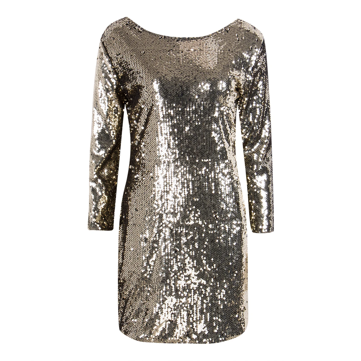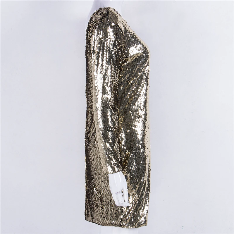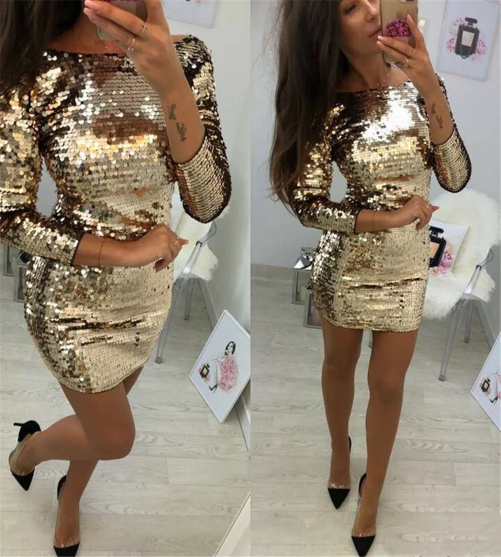 Осеннее сексуальное платье с круглым вырезом, золотыми блестками и ...