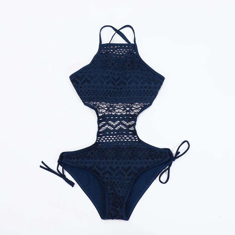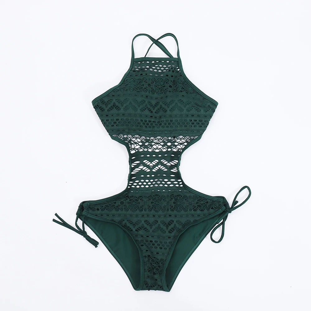 Новинка 2022, женский слитный купальник, женский сексуальный Монокини с вырезами, кружевной купальный костюм с лямкой на шее, пляжная одежда, однотонное боди
