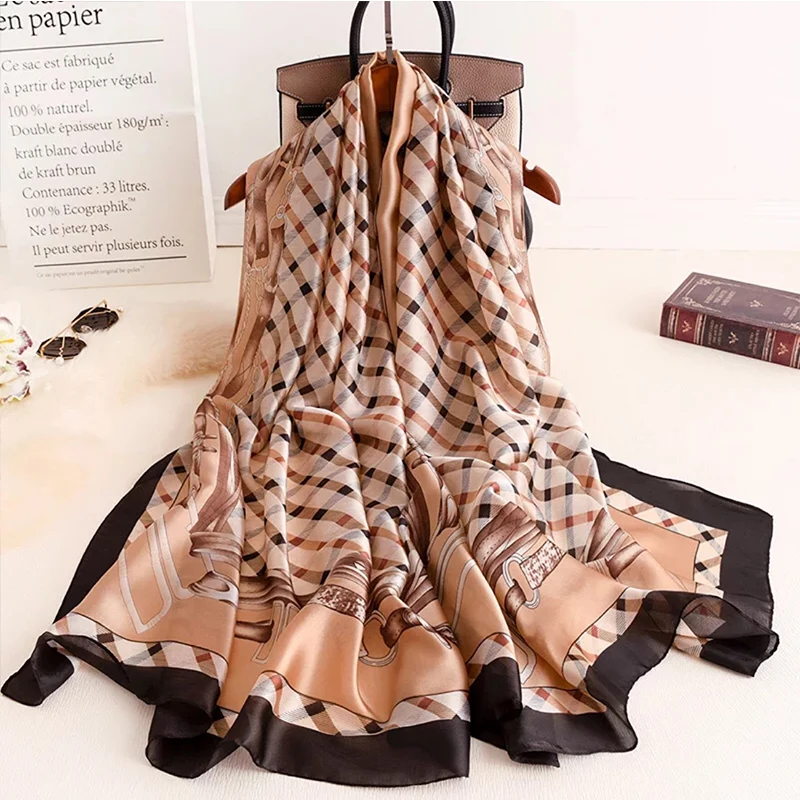 Классический женский шелковый шарф, женские шарфы, женская Пляжная ...