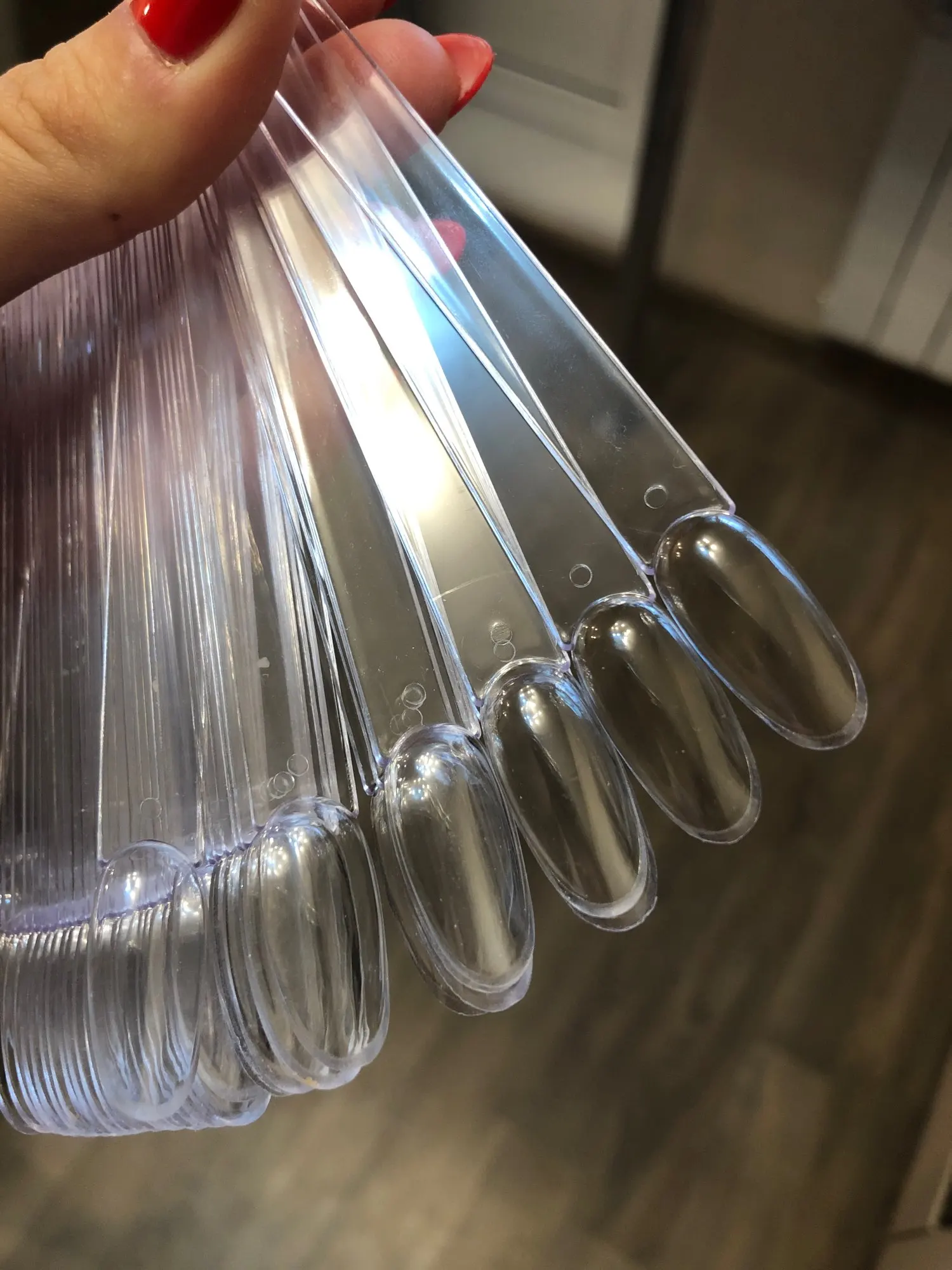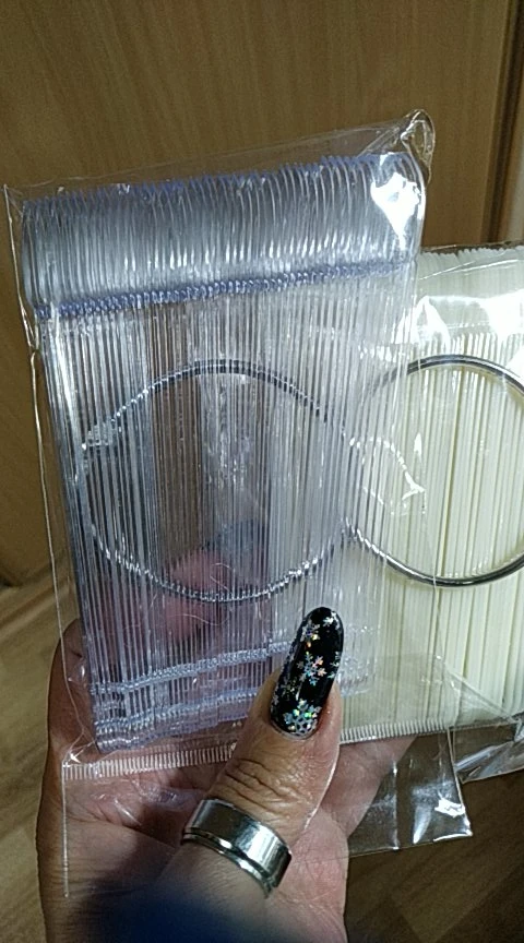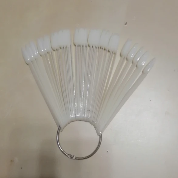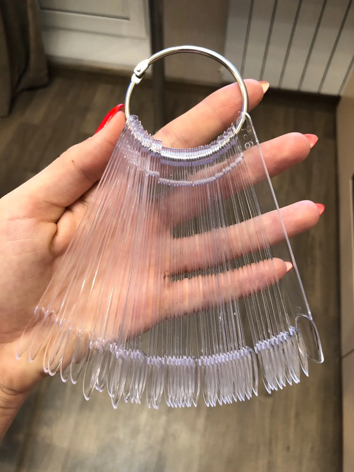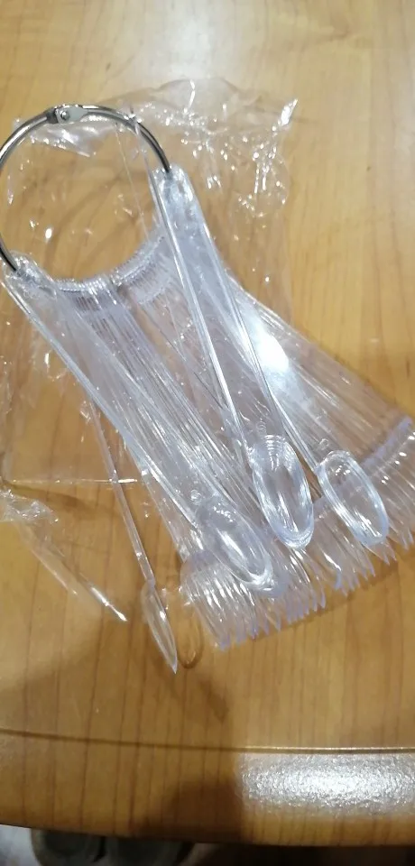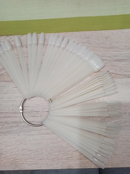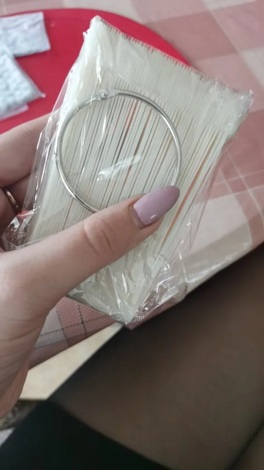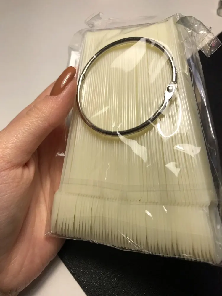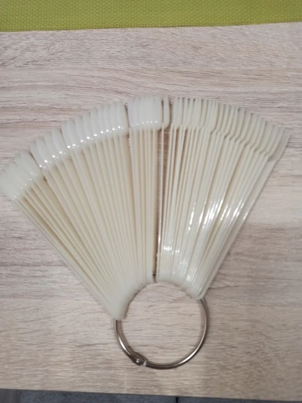 Отличные типсы, слегка тонковаты, но за такую цену - огонь! Доставка около месяца. Кольцо металлическое, крепкое. Ровно 50 шт.