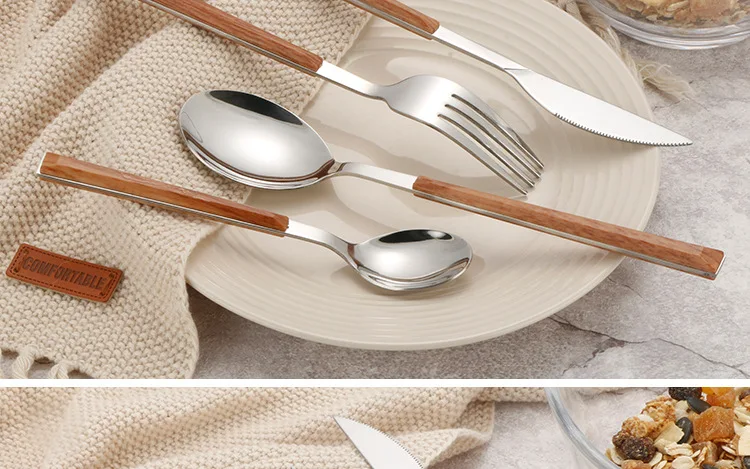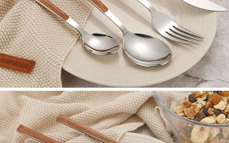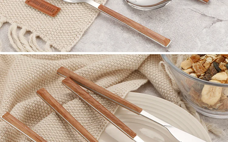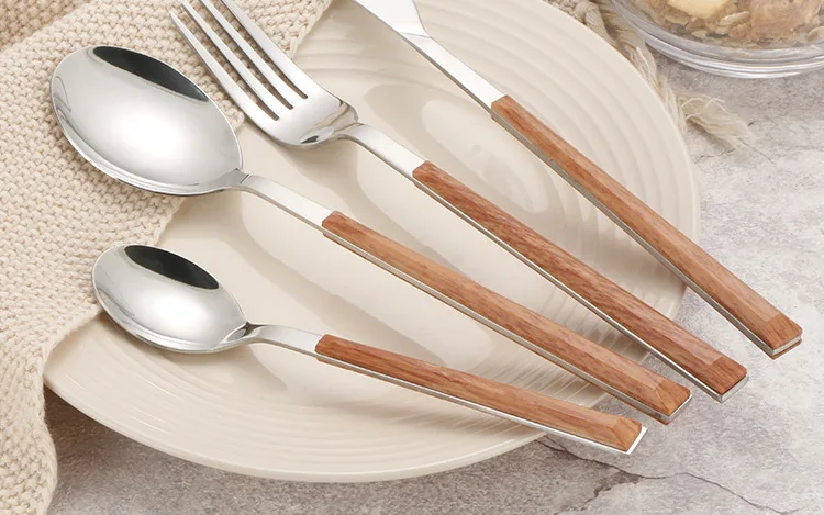 Столовые приборы из нержавеющей стали, посуда, вилка, ложка столовые приборы нож, Имитация деревянной ручки, столовая посуда для кухни и ужина