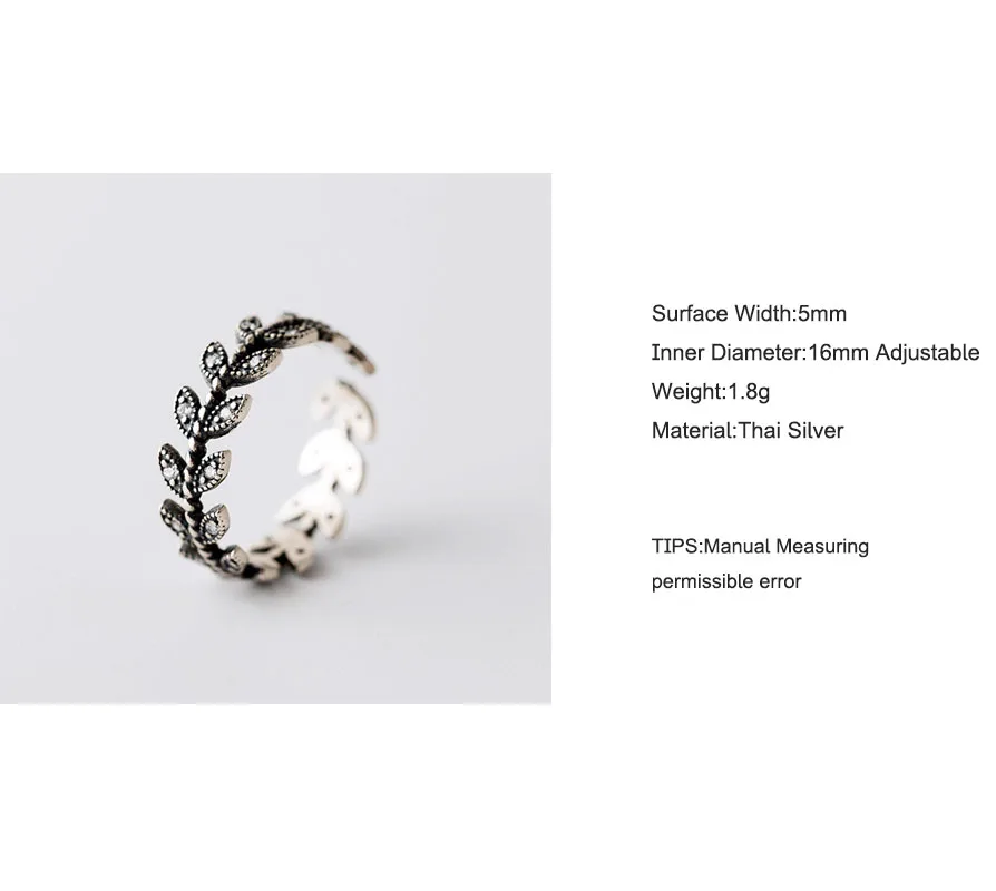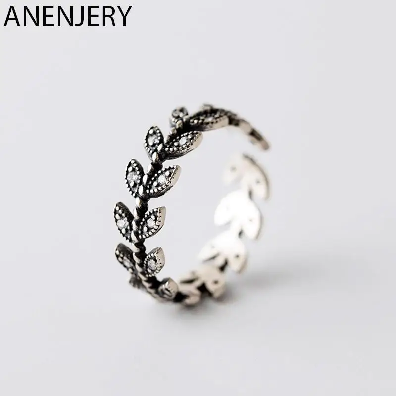 Женское серебряное кольцо в виде ветки ANENJERY, винтажное Открытое кольцо из тайского серебра, ювелирные изделия в подарок