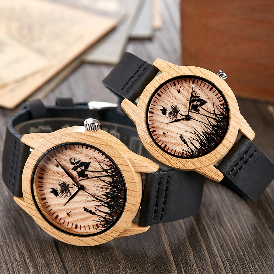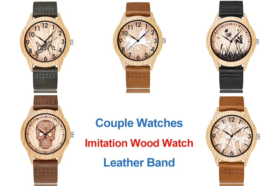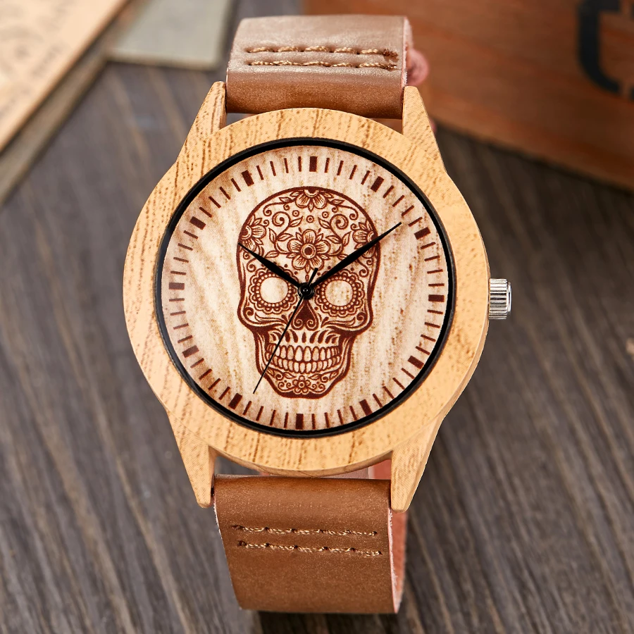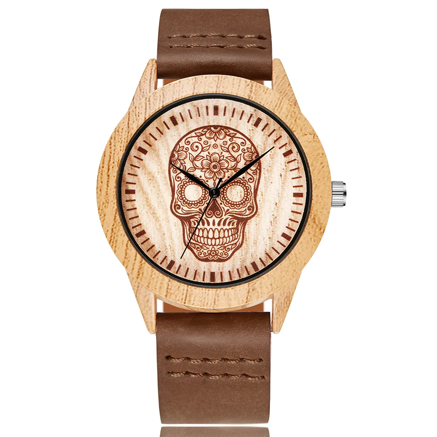 Мужские и женские наручные часы с имитацией дерева и черепами, наручные часы с имитацией дерева, акриловый чехол, наручные часы для влюбленных, часы с черепом