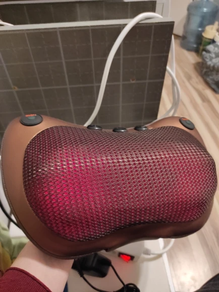 Посылка была упакована в пузырчатую пленку, но упаковка всё равно помялась (а может такую продавец и отправил). Массажёр работает нормально - сначала крутится в одну сторону, потом останавливается и начинает крутиться в другую сторону, но никакого прогрева нет. Какая-то подсветка есть (это ли считают инфракрасной - не знаю).