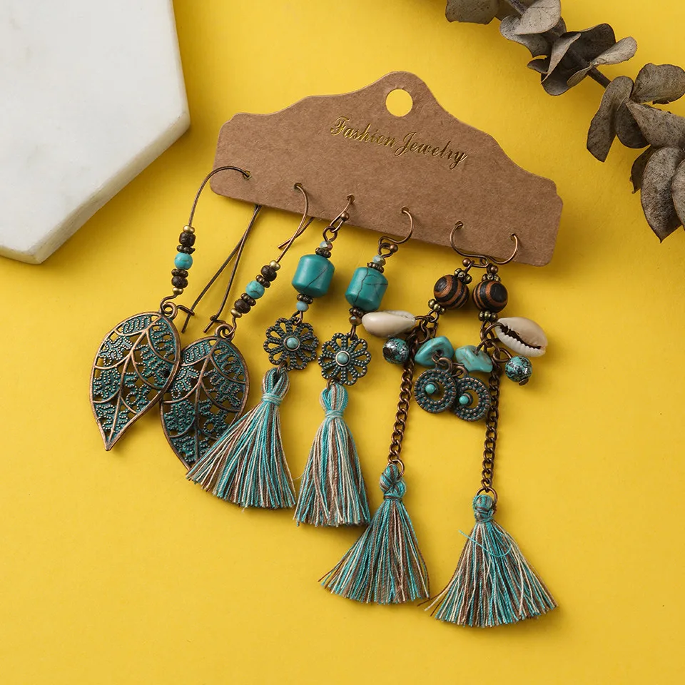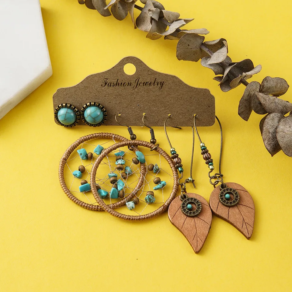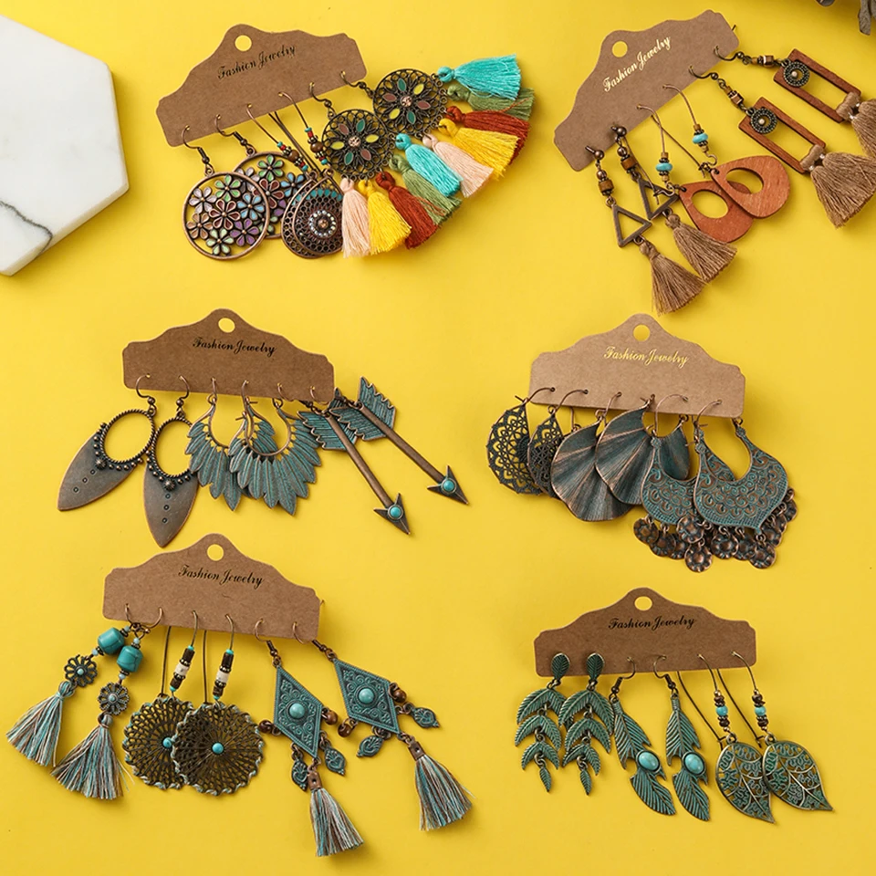 Богемия Геометрическая Бронза Коричневые Серьги Устанавливает Старинные Длинные Натуральные Деревянные Камни Бахрома Кисточкой Серьги для Женщин Девушки Комплект Ювелирных Изделий Оптовая Dropshipping