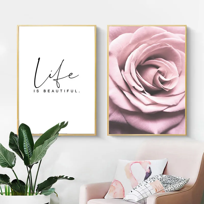 Настенные плакаты с изображением розовой розы HD2771 в скандинавском стиле с цветочным рисунком картина с цитатой