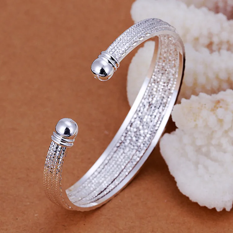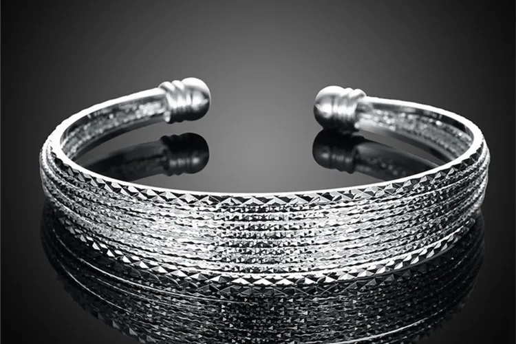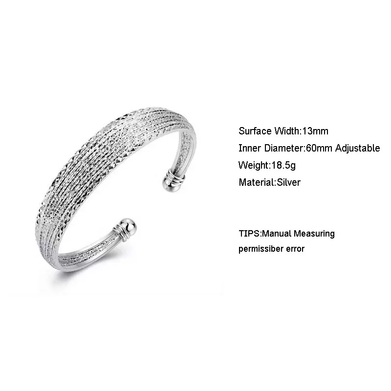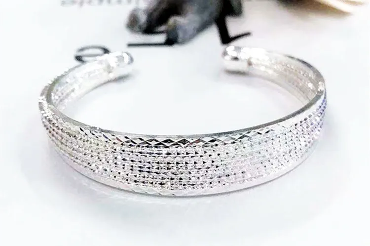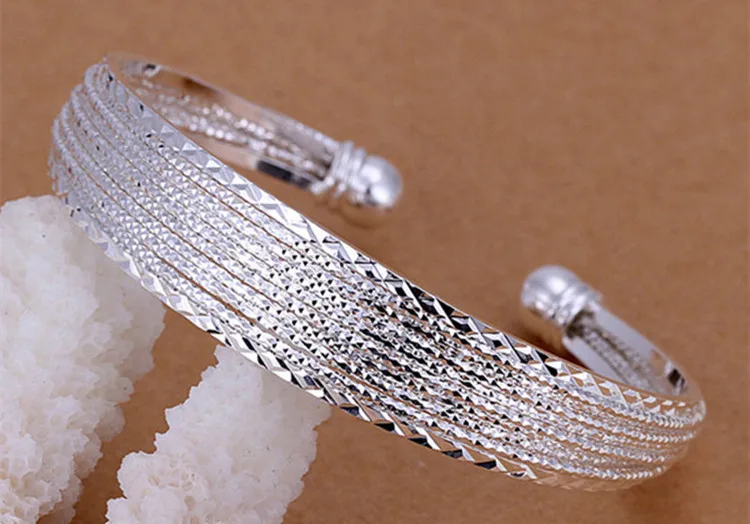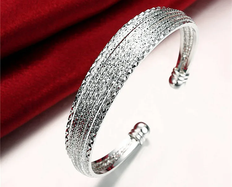 925 стерлингового серебра широкие линии узор браслет для женщин моды простой браслет ювелирные изделия аксессуары S-B286