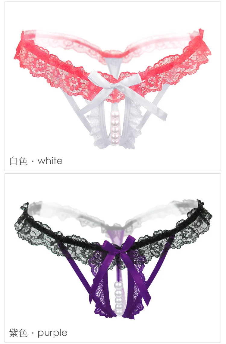 Сексуальные трусики с вырезом, жемчужные стринги, кружевной бант, с...