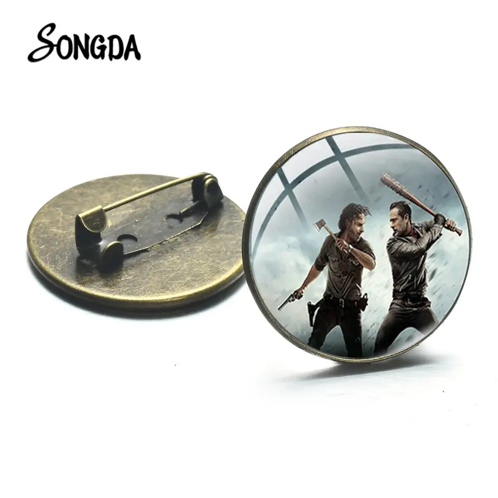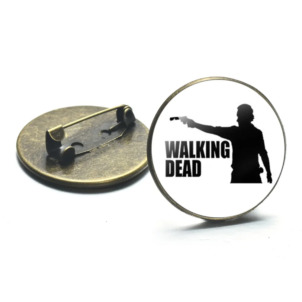 Античная бронза позолоченный с изображениями из сериала Ходячие мертвецы, брошь на застежке, горячий американский ужасов ТВ стимпанк стеклянные круглые Куртки модные броши