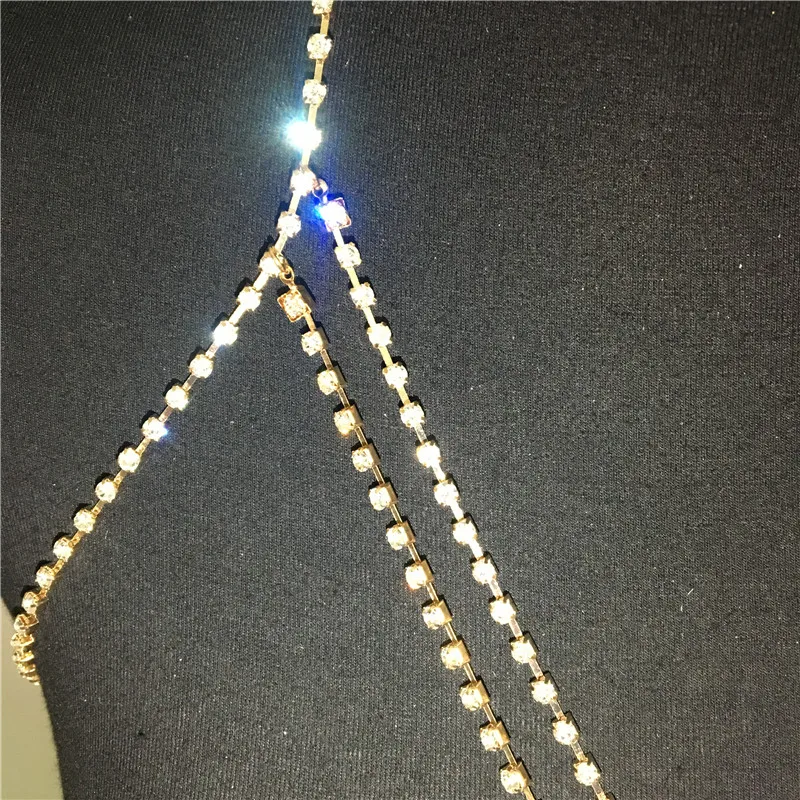 Блестящий Полный Кристалл горный хрусталь грудь Цепочка Золото Серебро крест бюстгальтер украшения для тела сексуальные женщины Вечеринка клуб мода Цепочка для тела