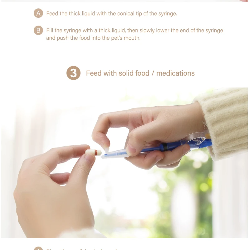 Есть ли у вас проблемы с кормлением вашего питомца? Трудно контролировать дозы и беспокоиться о вреде вашему питомцу, если он работает неправильно? Ну, получите этот круглый дозатор для лекарств для домашних животных, и все ваши проблемы будут решены. Изготовлен из пищевого пластика, мягкий, безопасный и удобный в использовании. Дизайн шприца облегчает получение лекарств, помогает домашним животным проглотить лекарство и контролировать дозировку. Более того, 2 силиконовые трубки включены для изменения. Конструкция с двойным отверстием позволяет легко работать и экономит ваши проблемы и усилия. Это абсолютно экономия времени и отличный помощник для вас!