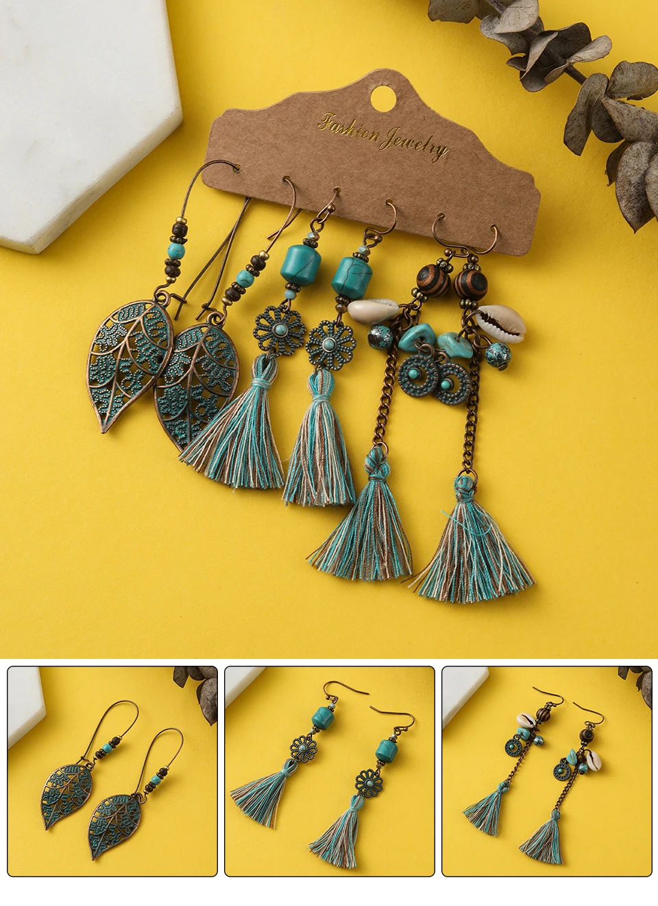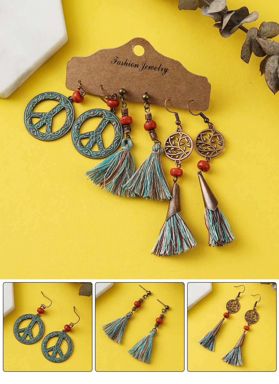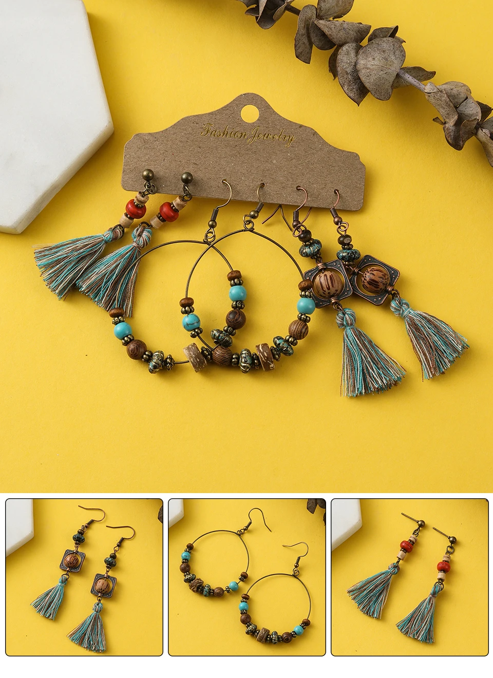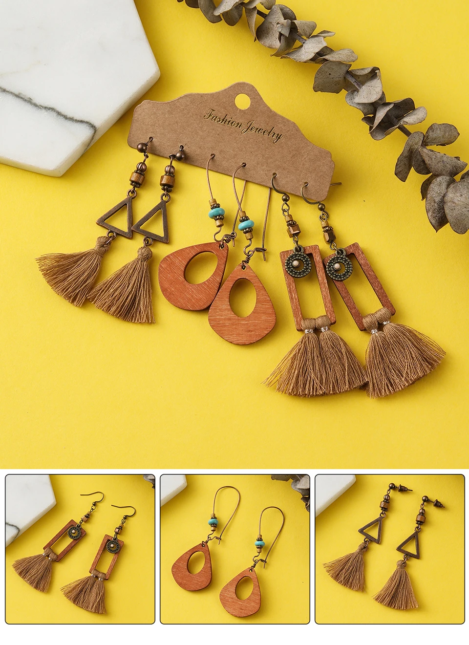 Старинные Элегантные Натурального Дерева Смешанные Серьги Набор Для Женщин Чешские Этнические Деревянные Бусы Изумрудный Кисточкой Мотаться Серьги Женщины Новый 2020 Подарок Ювелирных Изделий Способа