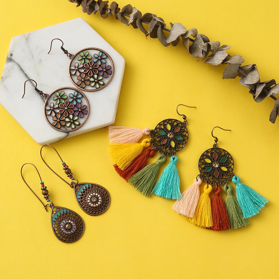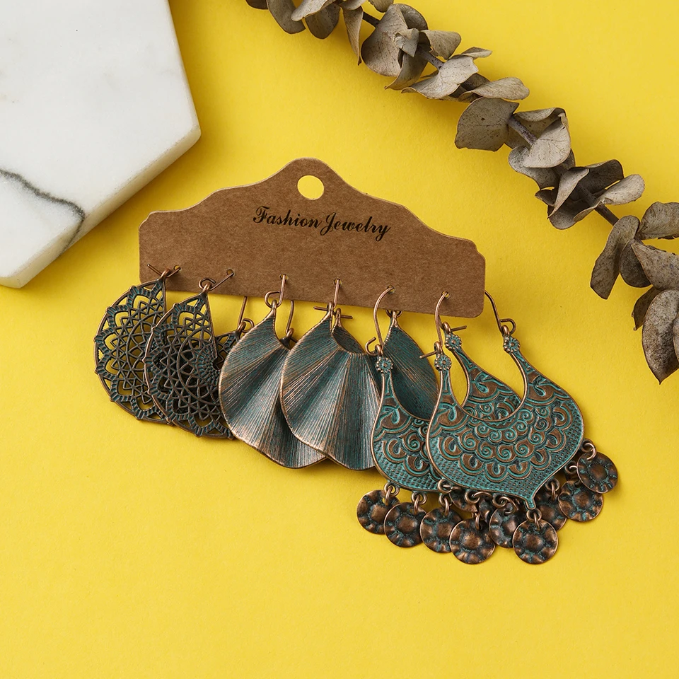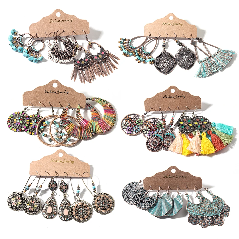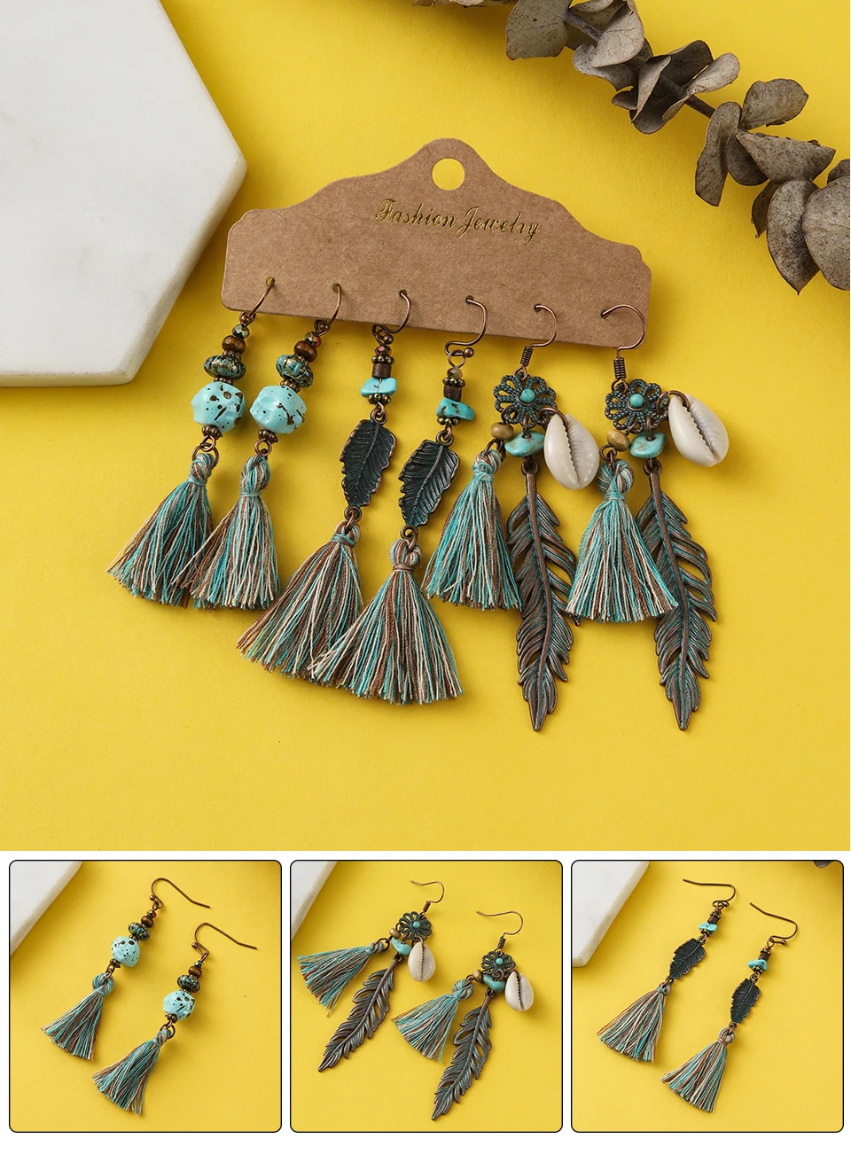 Старинные Элегантные Натурального Дерева Смешанные Серьги Набор Для Женщин Чешские Этнические Деревянные Бусы Изумрудный Кисточкой Мотаться Серьги Женщины Новый 2020 Подарок Ювелирных Изделий Способа