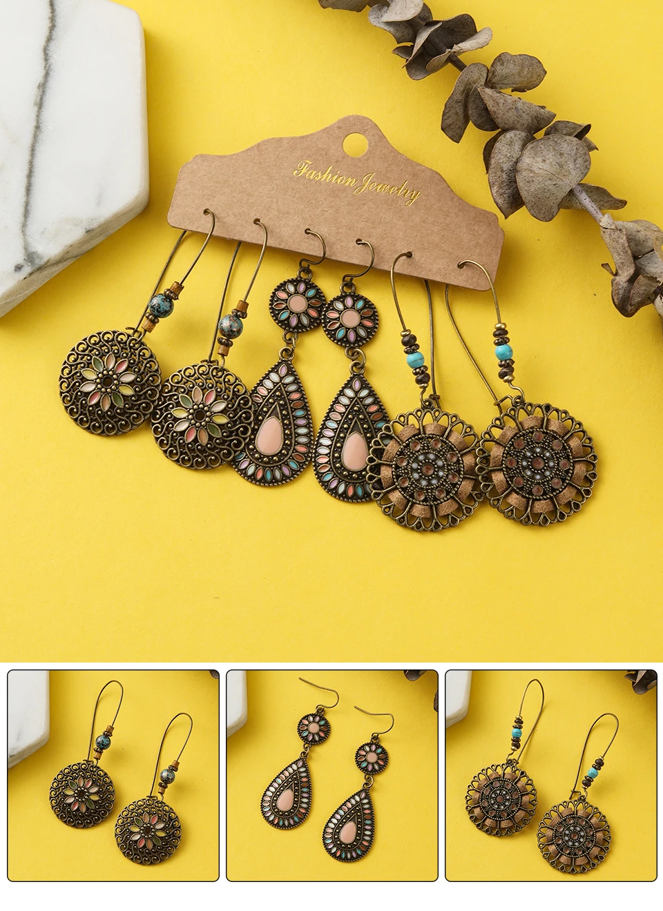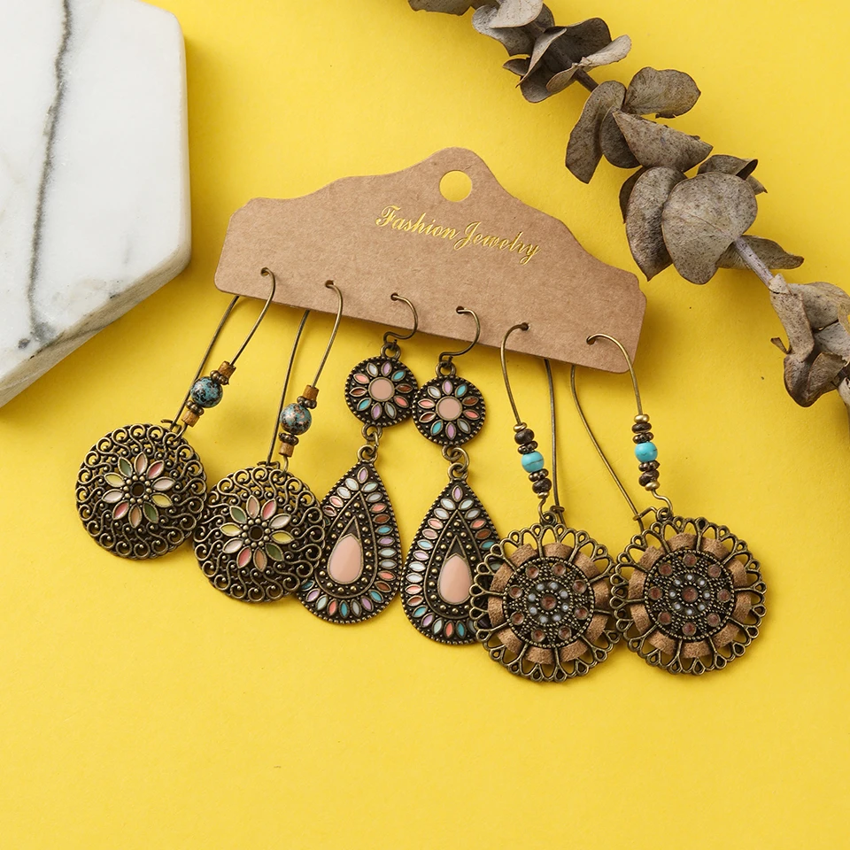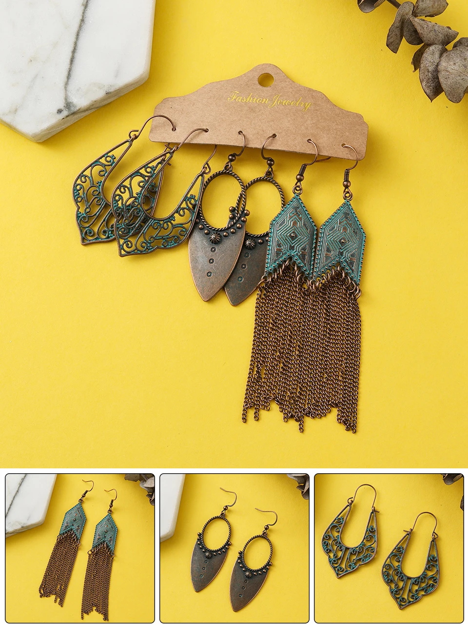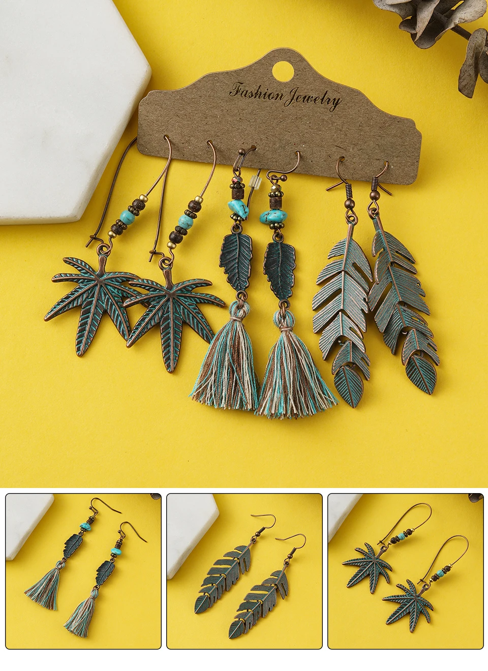 Старинные Элегантные Натурального Дерева Смешанные Серьги Набор Для Женщин Чешские Этнические Деревянные Бусы Изумрудный Кисточкой Мотаться Серьги Женщины Новый 2020 Подарок Ювелирных Изделий Способа