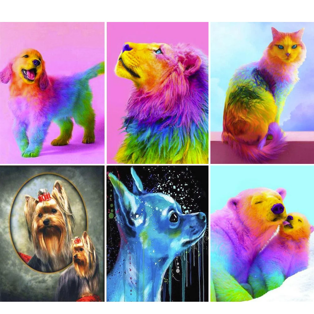 Полностью Квадратный бриллиант, 5D Вышивка животных собака кошка ро...