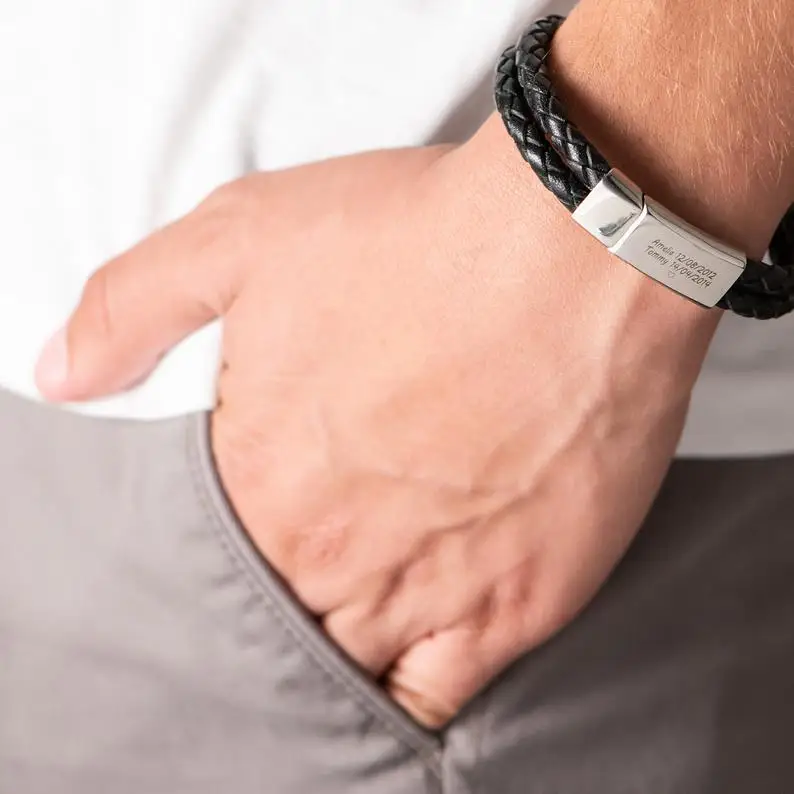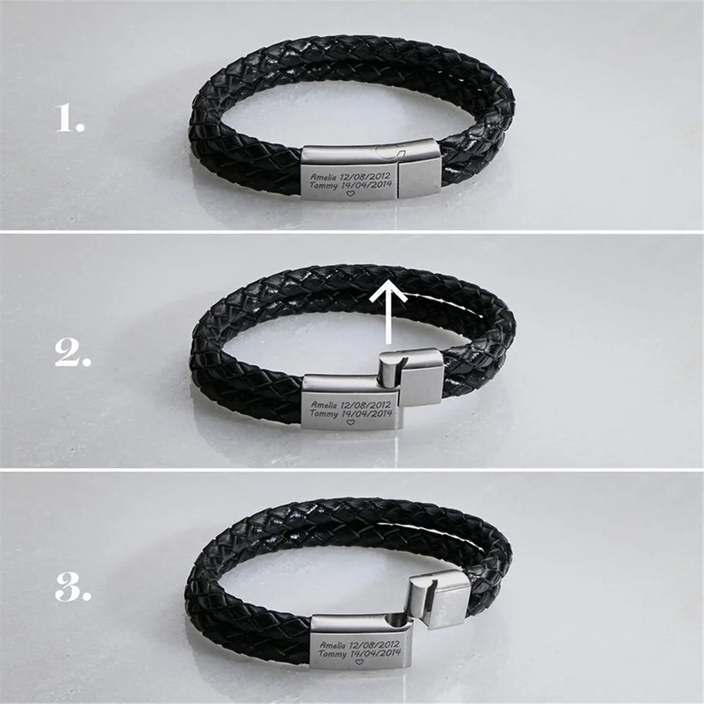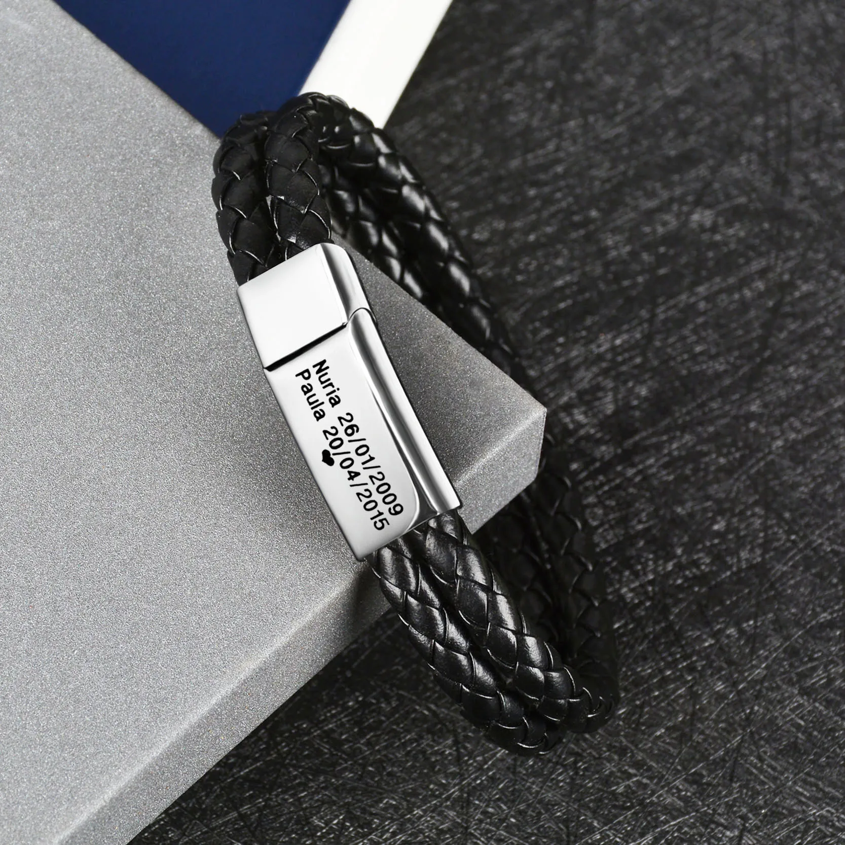 Мужские кожаные браслеты на заказ с гравировкой текста имени даты сердца сильные магнитные замочки браслет для мужчин день рождения ювелирные изделия