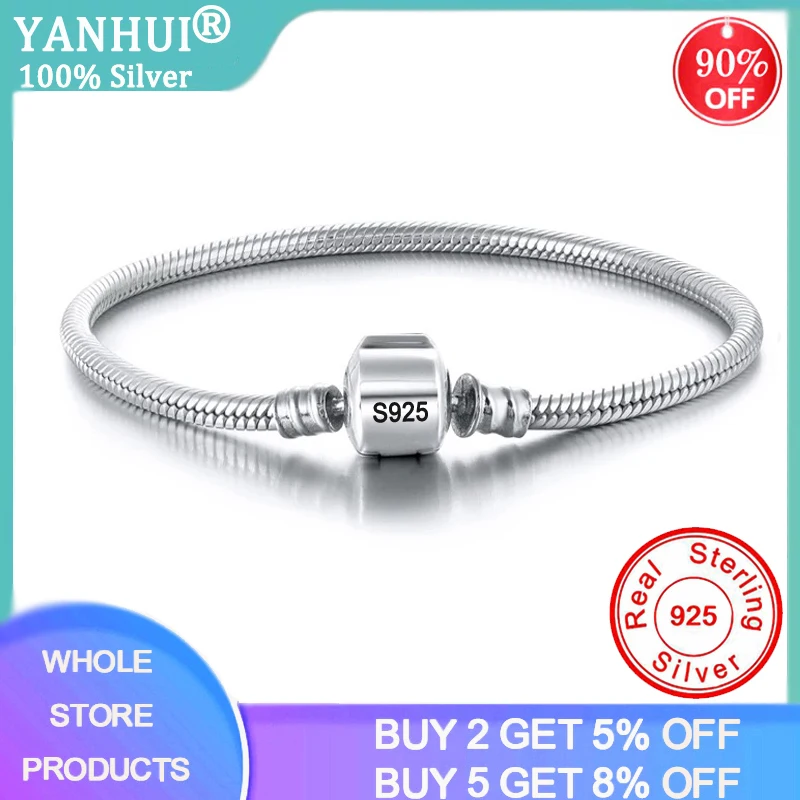 Яньхуэй ювелирные украшения с сертификатом для женщин 100% чистого серебра 3 мм Шарм браслет с оригинальной S925 логотип Сделай Сам браслет из бусин