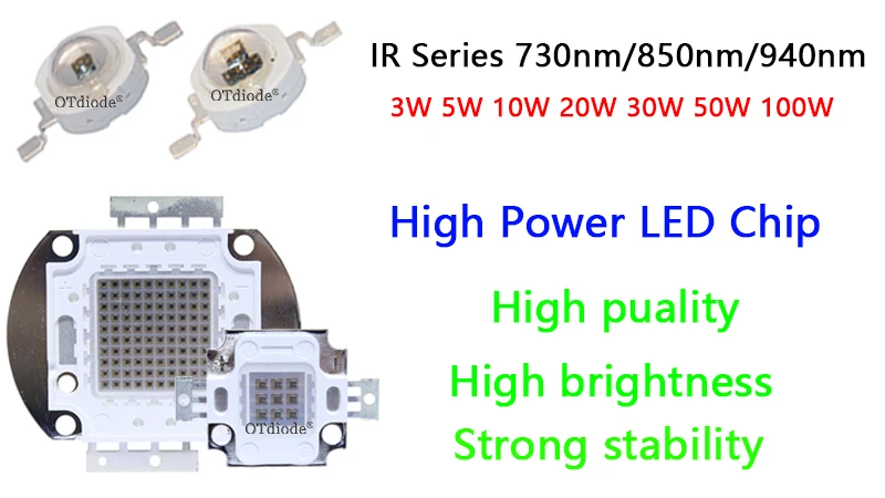 Светодиодный ИК-чип высокой мощности 850 нм 3 Вт 10 Вт 20 Вт 30 Вт 50 Вт 100 Вт, диодный излучатель, COB светильник, матрица 850 нм для камеры ночного видения