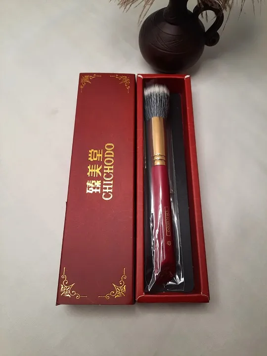 Отличная многофункциональная кисть от CHICHODO Store Кисть приехала в РБ меньше чем за месяц. Упакована была в фирменную коробочку - красивая подача. Сама же кисть была упакована в целлофановый пакет. Кисть двухслойная из козьей шерсти, мягкая. Тонкие и мягкие щетинки просто гладят кожу, не вызывая раздражения, не колят и не царапают. Кисть плотно набита, срез ворса ровный, мягкий и упругий. Подойдёт для румян, хайлайтера, пудры. Габариты кисти: длина 17 см., длина ворса 3 см. Ручка кисти вишнёвого цвета, выполнена из пластика и на ручке имеется логотип (надпись бренда) CHICHODO. Этот бренд не подводит никогда. Берите не пожалеете!